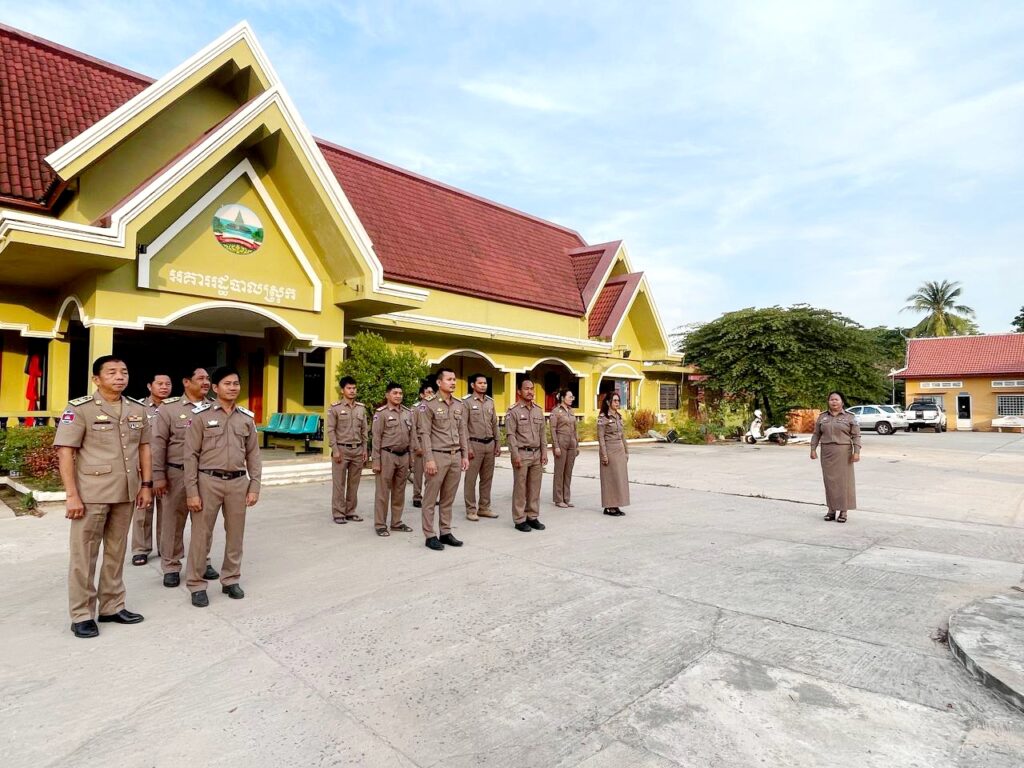មន្រ្តីរាជការ នៃរដ្ឋបាលស្រុកមណ្ឌលសីមា បានធ្វើការគោរពទង់ជាតិ និងភ្លេងជាតិ នៃព្រះរាជាណាចក្រកម្ពុជា នាព្រឹកថ្ងៃចន្ទនេះដើមសប្តាហ៍