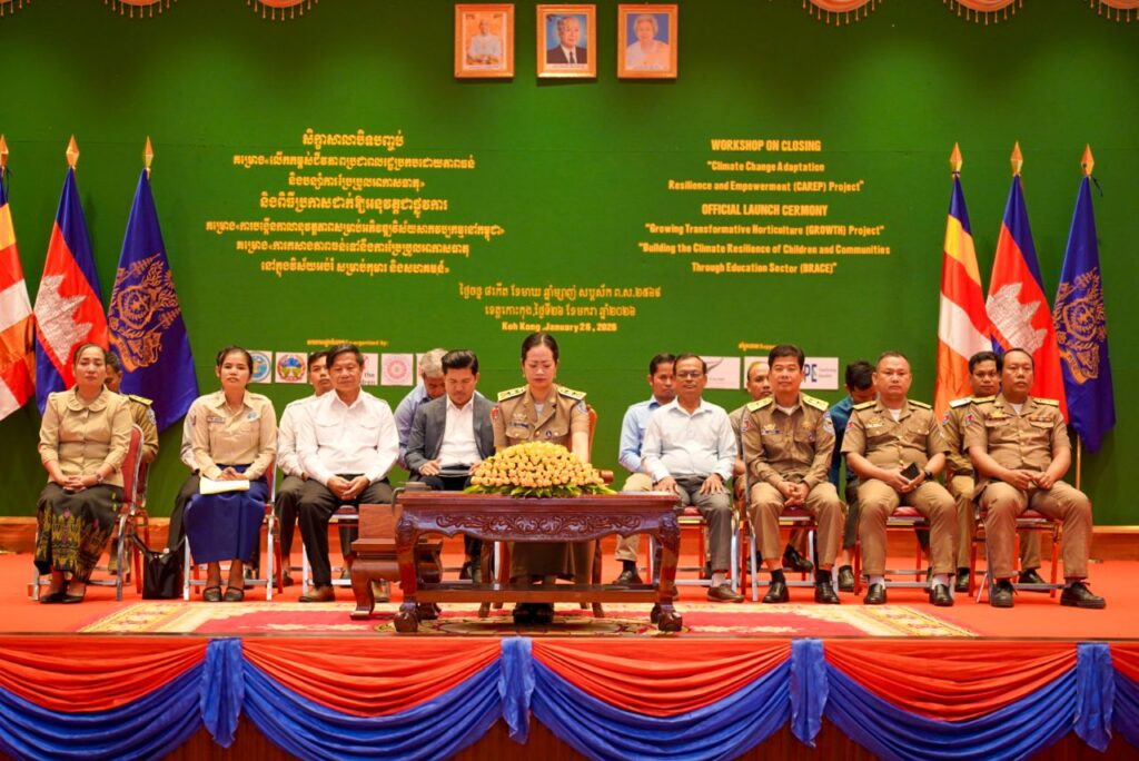 ស្រុកកោះកុង ៖ នាព្រឹកថ្ងៃទី២៦ ខែមករា ឆ្នាំ២០២៦ លោក ណឹម ភីរម្យ អភិបាលរងស្រុកកោះកុង តំណាង លោក សុវណ្ណ ប៊ុនធឿន អភិបាលនៃគណៈអភិបាលស្រុកកោះកុង បានដឹកនាំ លោក ខៀវ ជីវ័នរ័ត្ន ប្រធានការិយាល័យអប់រំ យុវជននិងកីឡាស្រុកកោះកុង លោក ជួន ចិន្តា ប្រធានការិយាល័យកសិកម្ម ធនធានធម្មជាតិ និងបរិស្ថានស្រុកកោះកុង អញ្ជើញចូលរួមជាភ្ញៀវកិត្តិយសក្នុងសិក្ខាសាលាបិទបញ្ចប់គម្រោងលើកកម្ពស់ជីវភាពប្រជាពលរដ្ឋប្រកបដោយភាពធន់ និងបន្ស៉ាំការប្រែប្រួលអាកាសធាតុ (គម្រោង ការីប) និងពិធីបើកគម្រោងភាពធន់ និងការប្រែប្រួលអាកាសធាតុក្នុងវិស័យអប់រំ (BRACE) និង គម្រោងបង្កើនកាលានុវត្តភាពសម្រាប់អភិវឌ្ឍវិស័យសាកវប្បកម្ម(GROWTH) នៅសាលមហោស្រព ខេត្តកោះកុង ។