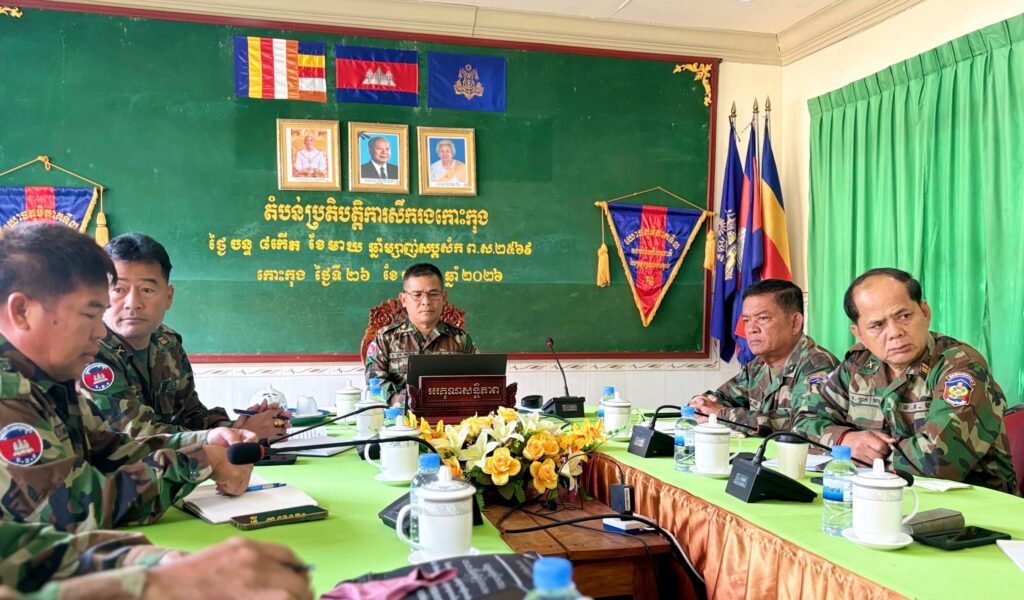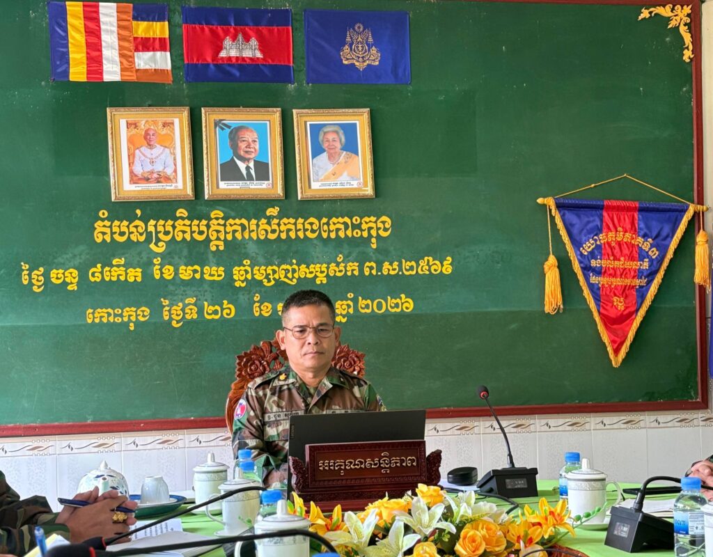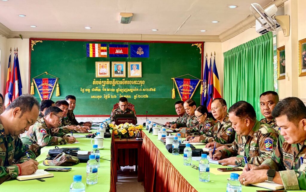 លោកឧត្តមសេនីយ៍ត្រី ជួន សុភ័ក្រ មេបញ្ជាការតំបន់ប្រតិបត្តិការសឹករងកោះកុង បានដឹកនាំលោក លោកស្រីមេបញ្ជាការរង នាយសេនាធិការរង ចូលរួមប្រជុំបូកសរុបការងារយោធាសន្តិសុខ ប្រចាំឆ្នាំ២០២៥ និងផ្សព្វផ្សាយផែនការសកម្មភាពយោធាសន្តិសុខ ប្រចាំឆ្នាំ២០២៦ របស់កង័ពជើងគោក
