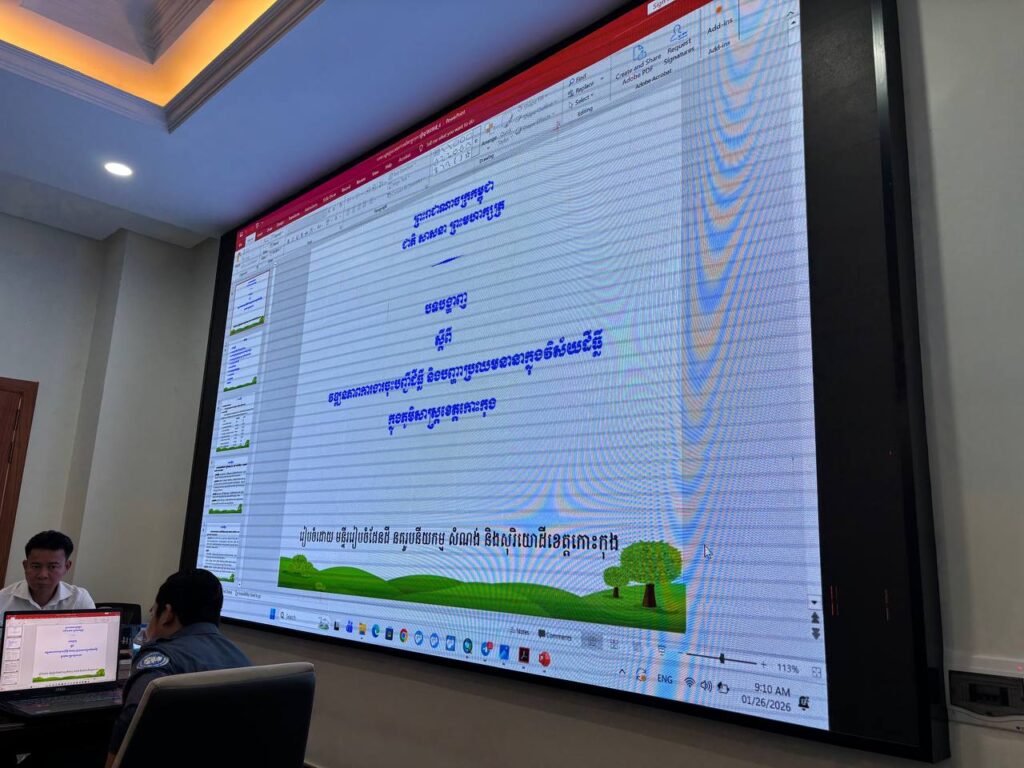 លោក ប៉ែន ប៊ុនឈួយ អភិបាលរង នៃគណៈអភិបាលស្រុកមណ្ឌលសីមា និងលោក រស់ ជីវិន ប្រធានការិយាល័យរៀបចំដែនដី នគរូបនីយកម្ម សំណង់ និងភូមិបាលស្រុក បានចូលរួមក្នុងកិច្ចប្រជុំពិនិត្យ និងជម្រះបញ្ជីដីធ្លីក្នុងភូមិសាស្ត្រខេត្តកោះកុង ក្រោមអធិបតីភាពឯកឧត្តម ទេព ធន រដ្ឋលេខាធិការក្រសួង ដ.ន.ស ។