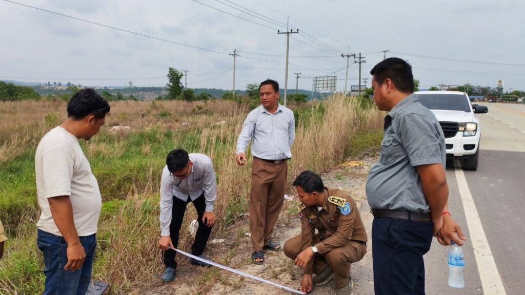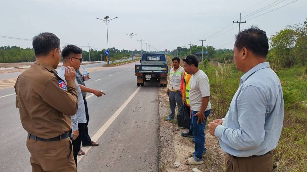 លោក ហេង គីមឆន នាយករងរដ្ឋបាល សាលាខេត្តកោះកុង បានចុះពិនិត្យទីតាំងដាំបង្គោល ដើម្បីដំឡើងភ្លើងសូឡាបំភ្លឺផ្លូវសាធារណៈ ពីចំណុចទីបញ្ជាការកងរាជអាវុធហត្ថខេត្តថ្មី មកក្រុងខេមរភូមិន្ទ