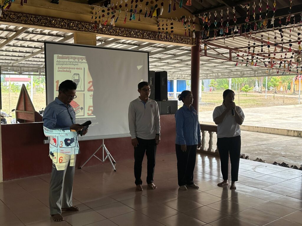 តមកក្រុមការងារក៏បានបទបង្ហាញអំពីសារអប់រំ អនាម័យ សុខភាព តិចខ្លាញ់ តិចអំបិល តិចស្ករ ហាត់ប្រាណ៣០នាទីរាល់ថ្ងៃ ធ្វើឱ្យសហគមន៍មានភាពធន់នឹងជំងឺ ជាពិសេសជំងឺមិនឆ្លងរួមានជំងឺលើសសម្ពាធឈាម ជំងឺទឹកនោមផ្អែម ជំងឺបេះដូង និងជំងឺដាច់សសៃឈាមក្នុងខួរក្បាល ។ចុងបញ្ចប់នៃកម្មវិធីផ្សព្សផ្សាយសាខាក៏បានផ្តល់ជូនពុកម៉ែ បងប្អូននូវ សាប៊ូកញ្ចប់ ព្រមទាំងនំកញ្ចប់មួយចំនួនផងដែរ ។