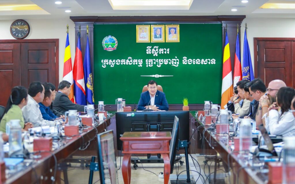 លោកស្រី អែម សុធារ៉ា ប្រធានមន្ទីរ បានដឹកនាំលោក សេង ប៊ុណ្ណា នាយខណ្ឌរដ្ឋបាលជលផលកោះកុង ចូលរួមប្រជុំពិនិត្យវឌ្ឍនភាពគម្រោងជលផលសមុទ្រ និងតំបន់ឆ្នេរប្រកបដោយចីរភាព ក្រោមអធិបតីភាពដ៏ខ្ពង់ខ្ពស់ឯកឧត្តម ឌិត ទីណា រដ្ឋមន្រ្តីក្រសួងកសិកម្ម រុក្ខាប្រមាញ់ និងនេសាទ ដោយមានការចូលរួមពីឯកឧត្តមរដ្ឋលេខាធិការ ឯកឧត្តមប្រតិភូរាជរដ្ឋាភិបាល ទទួលបន្ទុកជាប្រធានរដ្ឋបាលជលផល លោកអភិបាលរង នៃគណៈអភិបាលខេត្ដតំបន់ឆ្នេរ អនុប្រធានរដ្ឋបាលជលផល ប្រធាននាយកដ្ឋាន ប្រធានវិទ្យាស្ថានស្រាវជ្រាវ និងអភិវឌ្ឍន៍ជលផលសមុទ្រ មជ្ឈមណ្ឌលអភិវឌ្ឍន៍វារីវប្បកម្មសមុទ្រ ប្រធាន អនុប្រធានមន្ទីរកសិកម្ម រុក្ខាប្រមាញ់ និងនេសាទតំបន់ឆ្នេរ នាយខណ្ឌរដ្ឋបាលជលផលតំបន់ឆ្នេរ អង្គការ MCC និងទីប្រឹក្សាគម្រោង ADB សរុបចំនួន ៤២នាក់ ស្រី ០៨នាក់ នៅទីស្ដីការក្រសួងកសិកម្ម រុក្ខាប្រមាញ់ និងនេសាទ សាលប្រជុំលឿងរាជ។