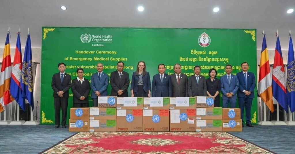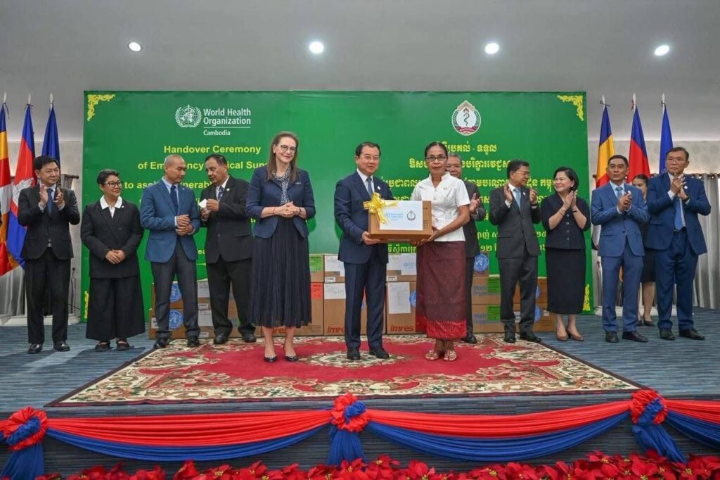 លោកស្រីគ្រូពេទ្យ ប៉ែន អ៊ុងវីរ៉ា អនុប្រធាន​មន្ទីរសុខាភិបាល នៃរដ្ឋបាលខេត្តកោះកុង អញ្ជើញចូលរួមពិធីប្រគល់ – ទទួល ឱសថ សម្ភារ និងបរិក្ខារវេជ្ជសាស្ត្រ សម្រាប់ប្រជាពលរដ្ឋរងគ្រោះនៅតាមបណ្តោយព្រំដែន កម្ពុជា-ថៃ ដែលជាអំណោយរបស់អង្គការសុខភាពពិភពលោក ជូនក្រសួងសុខាភិបាល ក្រោមអធិបតីភាពដ៏ខ្ពង់ខ្ពស់ ឯកឧត្ដម​សាស្ត្រាចារ្យ ឈាង រ៉ា រដ្ឋមន្ត្រី​ក្រសួង​សុខាភិបាល និង លោកស្រីវេជ្ជបណ្ឌិត Marianna Trias តំណាងអង្គការ សុខភាពពិភពលោកប្រចាំកម្ពុជា។ សម្ភារៈជំនួយដែលបានផ្តល់រួមមាន ឧបករណ៍សង្គ្រោះបន្ទាន់ និងវះកាត់ (TESK) កញ្ចប់សង្គ្រោះបន្ទាន់ (IEHK) ព្រមទាំងឱសថ និងសម្ភារៈ វេជ្ជសាស្ត្រចាំបាច់ផ្សេងៗ ដើម្បីគាំទ្រមន្ទីរពេទ្យ និងមណ្ឌលសុខភាពក្នុងការផ្តល់សេវា ព្យាបាល និងរក្សាបន្តសេវាសុខាភិបាលចាំបាច់សម្រាប់ប្រជាពលរដ្ឋដែលរងផលប៉ះពាល់។