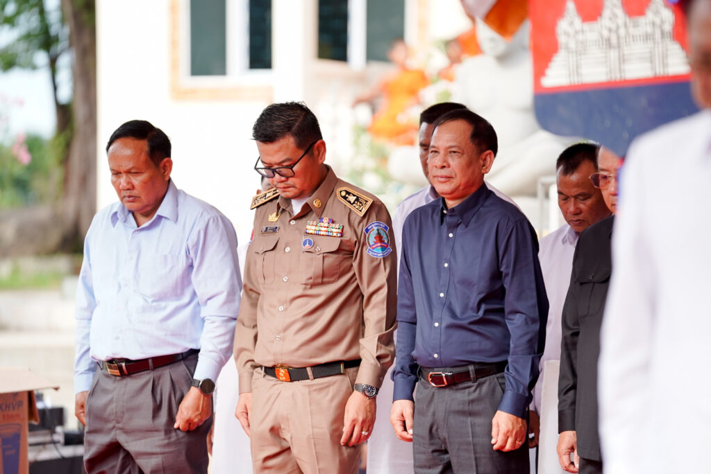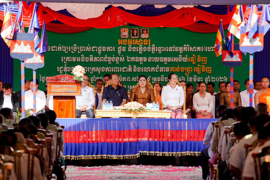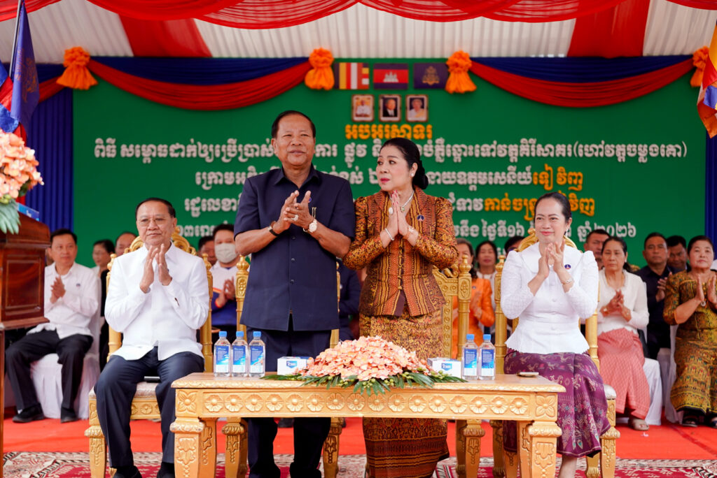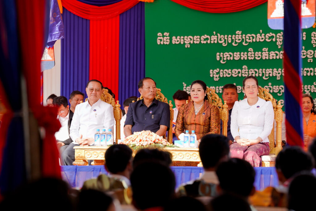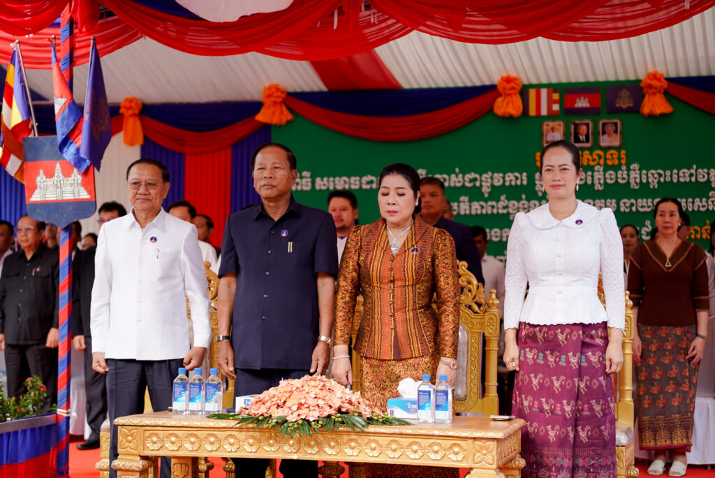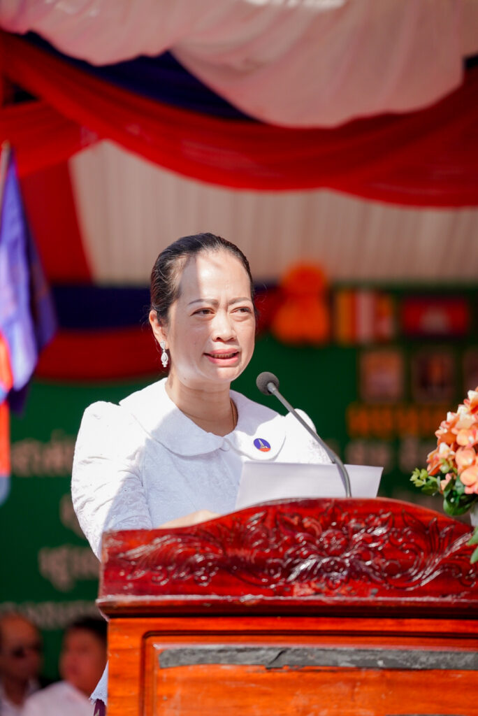 លោកជំទាវ ឈី វ៉ា អភិបាល នៃគណៈអភិបាលខេត្តកោះកុង បានអញ្ជើញស្វាគមន៍ ឯកឧត្តម នាយឧត្តមសេនីយ៍ ទៀ វិញ រដ្ឋលេខាធិការ ក្រសួងការពារជាតិ ក្នុងពិធីសម្ពោធដាក់ឱ្យប្រើប្រាស់ជាផ្លូវការ “ផ្លូវ និងភ្លើងបំភ្លឺឆ្ពោះទៅវត្តគិរីសាគរ(វត្តចម្លងគោ)”