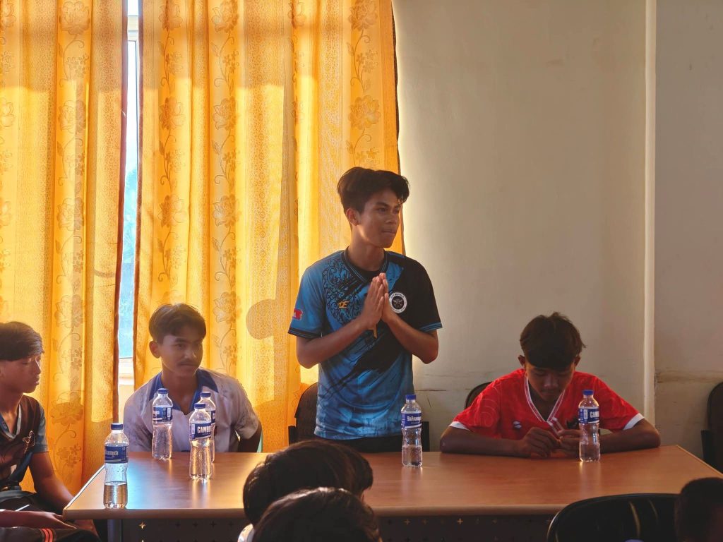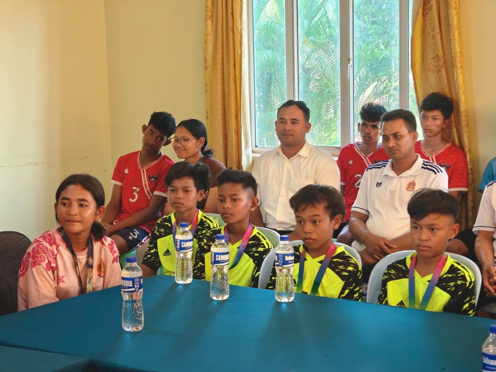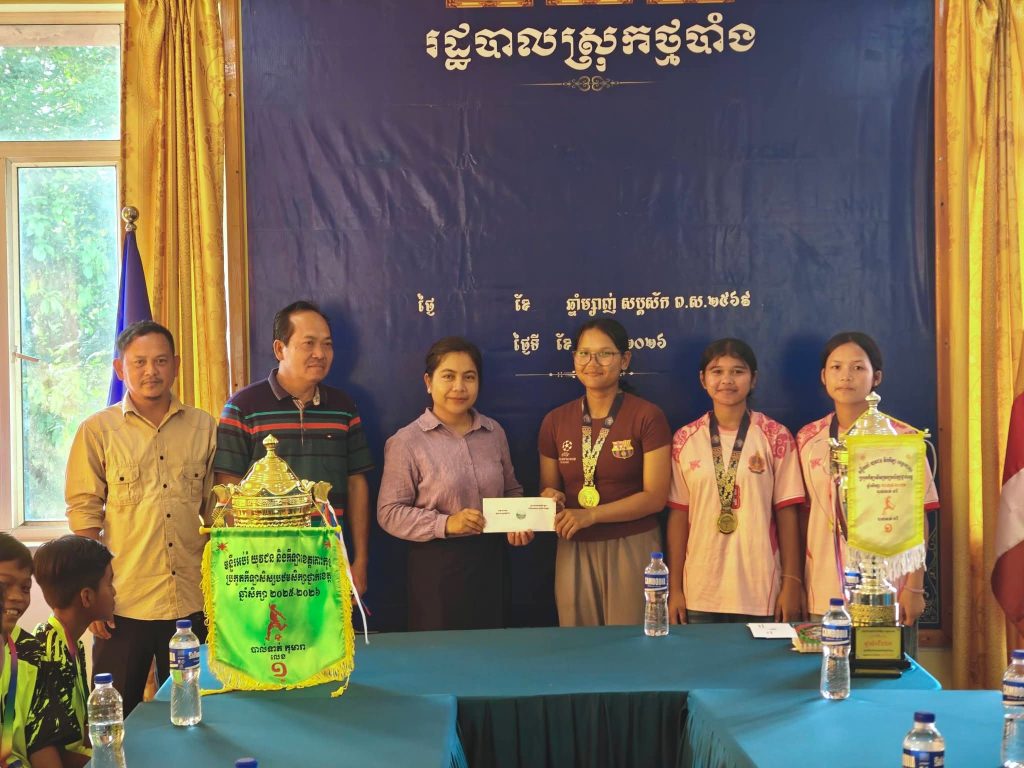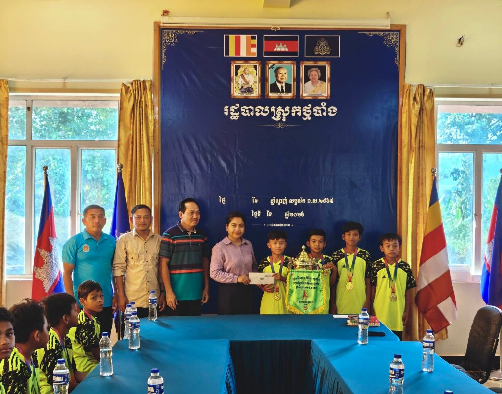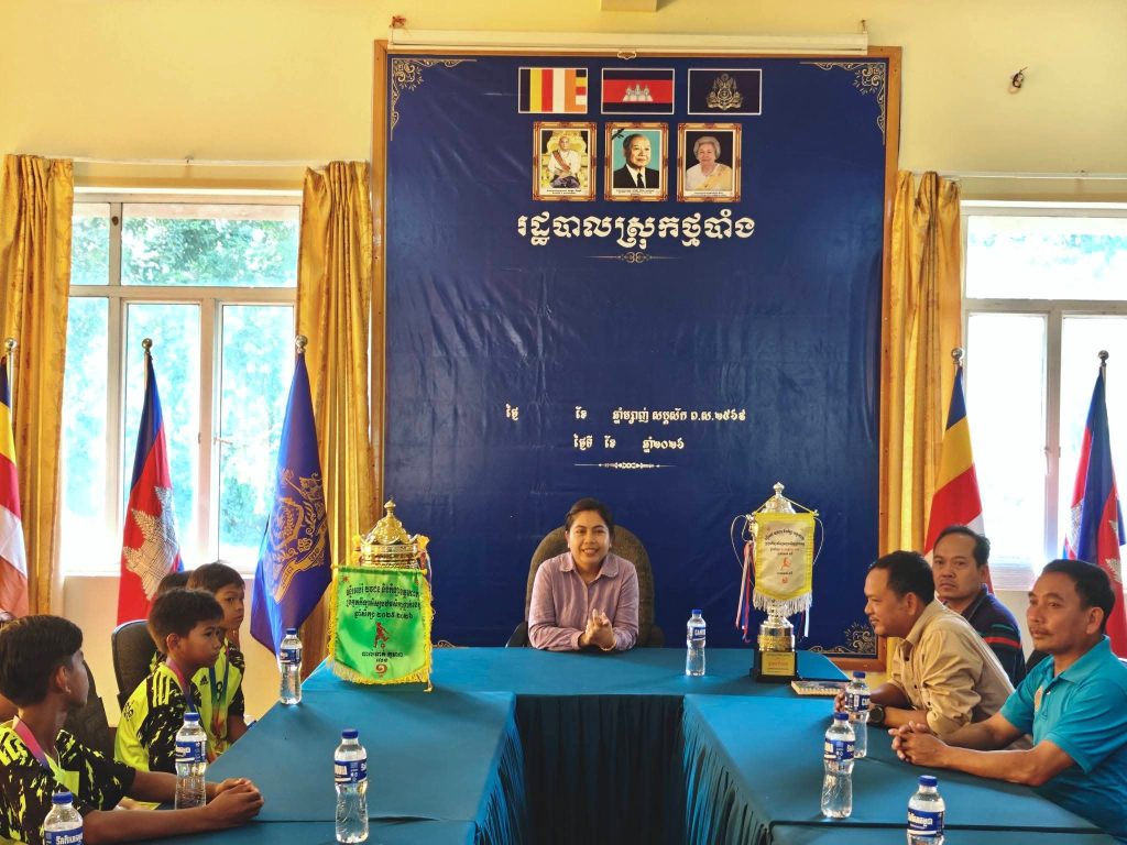លោកស្រី ទួត ហាទីម៉ា អភិបាល នៃគណៈស្រុកថ្មបាំង អញ្ជើញសំណេះសំណាលជាមួយកីឡាករ និងកីឡាការិនីបាល់ទាត់ និងបានឧបត្ថម្ភថវិកាមួយចំនួន ជូនដល់ក្រុមកីឡាករ និងកីឡាការិនី ដែលប្រព្រឹត្តទៅនៅសាលប្រជុំសាលាស្រុកថ្មបាំង។