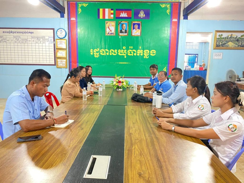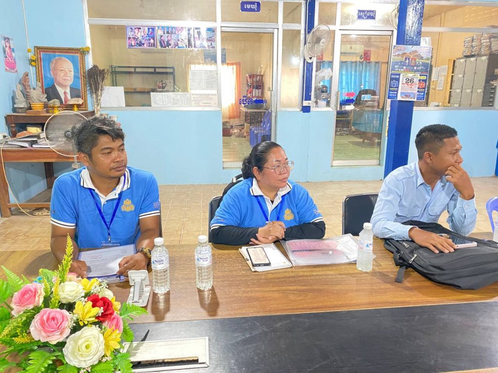 លោកស្រី ចា អែត ជំទប់ទី១ ឃុំប៉ាក់ខ្លង ដឹកនាំសមាជិកក្រុមប្រឹក្សាឃុំ ស្មៀនឃុំ និងជំនួយការរដ្ឋបាលឃុំ សហការជាមួយមន្ត្រីវិទ្យាស្ថានជាតិស្ថិតិ នៃក្រសួងផែនការ ចុះប្រតិបតិ្តការសម្ភាសន៍ ស្រង់ទិន្នន័យអង្កេតប្រជាសាស្រ្ត និងសុខភាពកម្ពុជាឆ្នាំ២០២៥-២០២៦ នៅសាលាឃុំប៉ាក់ខ្លង