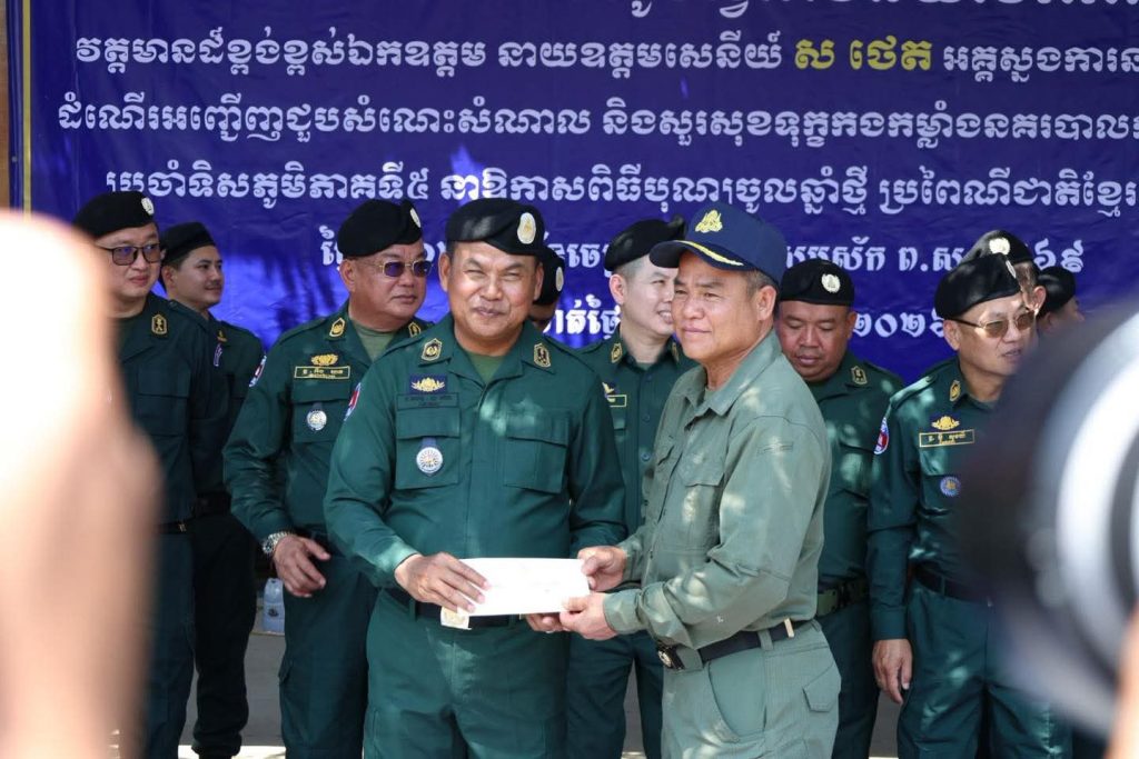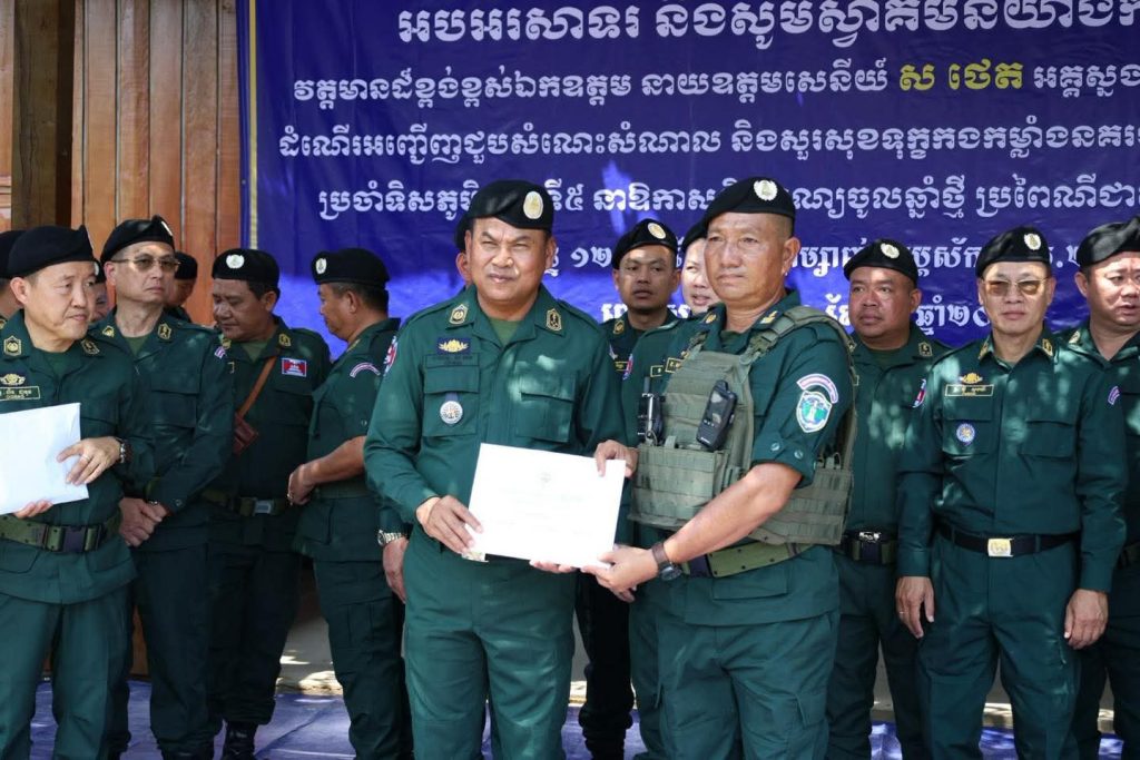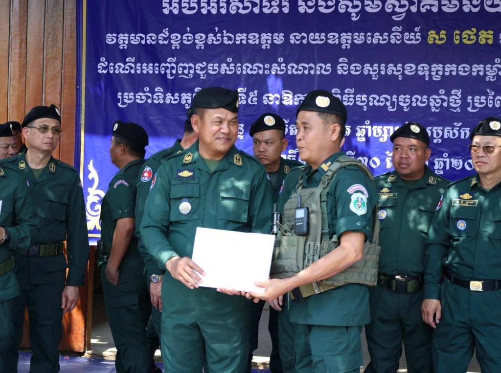 លោកឧត្តមសេនីយ៍ទោ គង់ មនោ ស្នងការនគរបាលខេត្តកោះកុង អមដំណើរដោយលោកវរសេនីយ៍ឯក សាំង សុខុម មេបញ្ជាការវរៈព្រំដែនគោគ៨២៧ អញ្ជើញចូលរួមអមដំណើរ ឯកឧត្តម នាយឧត្តមសេនីយ៍ ស ថេត អគ្គស្នងការនគរបាលជាតិ តំណាងដ៏ខ្ពង់ខ្ពស់ ឯកឧត្តមអភិសន្តិបណ្ឌិត ស សុខា ឧបនាយករដ្ឋមន្ត្រី រដ្ឋមន្ត្រីក្រសួងមហាផៃ្ទ អញ្ជើញជួបសំណេះសំណាល និងសួរសុខទុក្ខកងកម្លាំងនគរបាលការពារព្រំដែនប្រចាំទិសភូមិភាគទី៥ នាឱកាសពិធីបុណ្យចូលឆ្នាំថ្មី ប្រពៃណីជាតិខ្មែរ ឆ្នាំ២០២៦