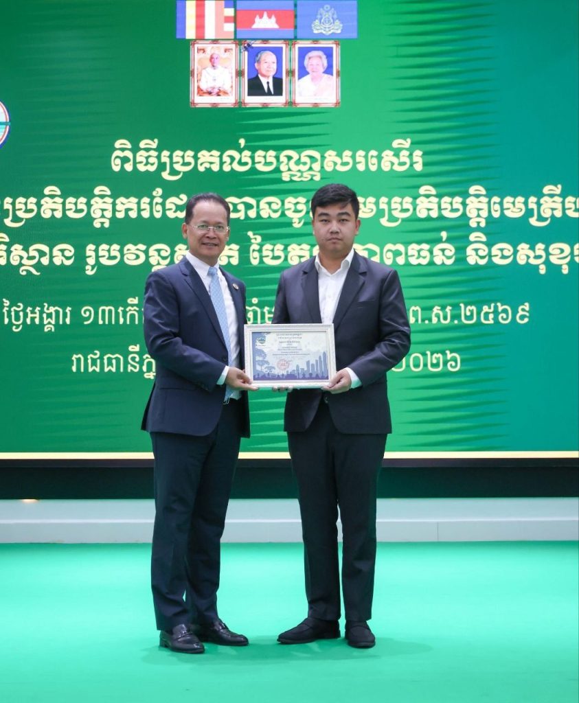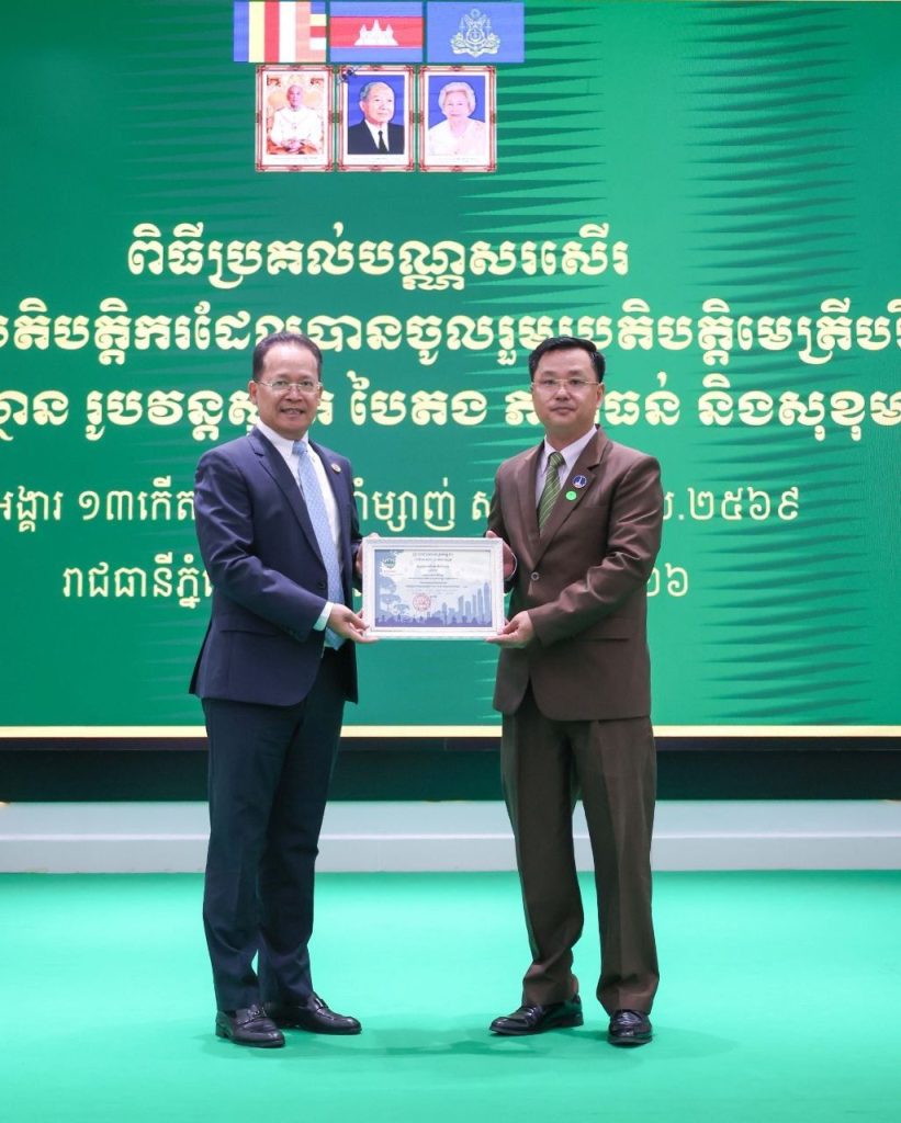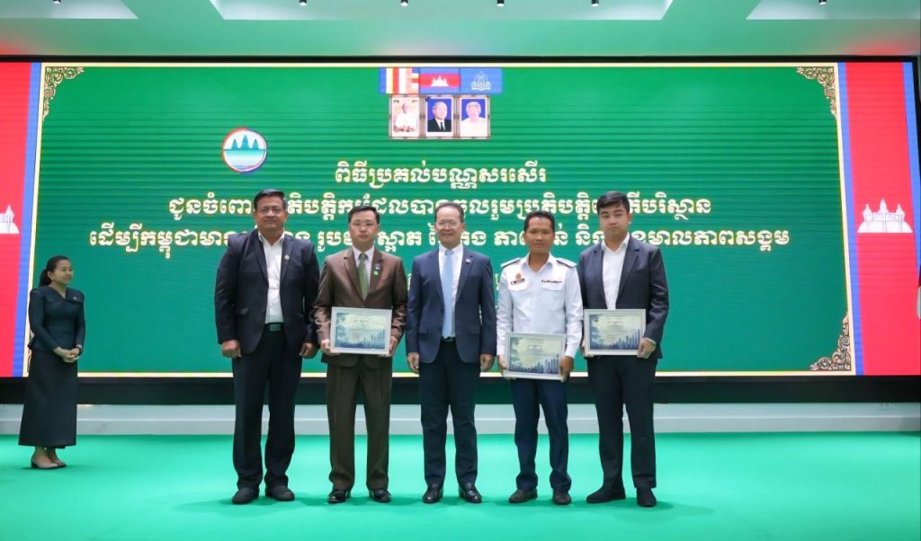 លោក អន សុធារិទ្ធ អភិបាលរង នៃគណៈអភិបាលខេត្តកោះកុង បានអញ្ជើញចូលរួម ក្នុងពិធីប្រគល់បណ្ណសរសើរ ជូនចំពោះប្រតិបត្តិករ ដែលបានចូលរួមប្រតិបត្តិមេត្រីបរិស្ថាន ដើម្បីកម្ពុជាមានបរិស្ថាន រូបវន្តស្អាត បៃតង ភាពធន់ និងសុខុមាលភាពសង្គម។