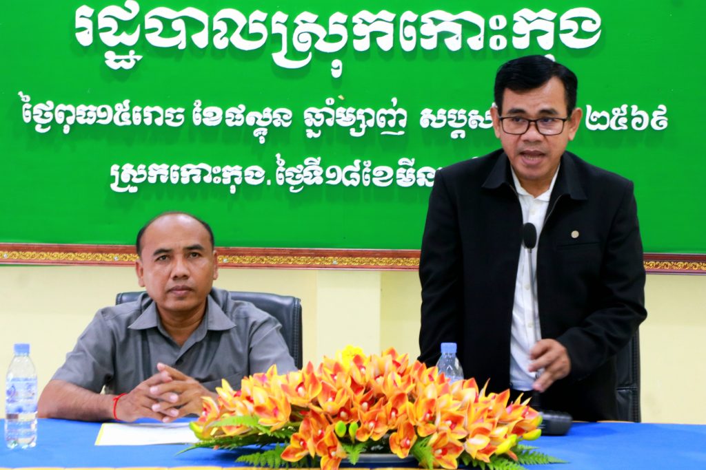 លោក ណឹម​ ភីរម្យ​ អភិបាលរងស្រុកកោះកុង អញ្ជើញ​ជាអធិបតីភាព​ ពិធីបេីកកិច្ចប្រជុំផ្សព្វផ្សាយ ស្តីពីឯកសារព័ត៌មានស្ថានភាពសេដ្ឋកិច្ច​ សង្គមកិច្ច​ ឆ្នាំ២០២៦​