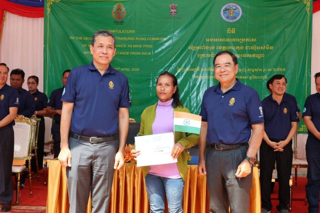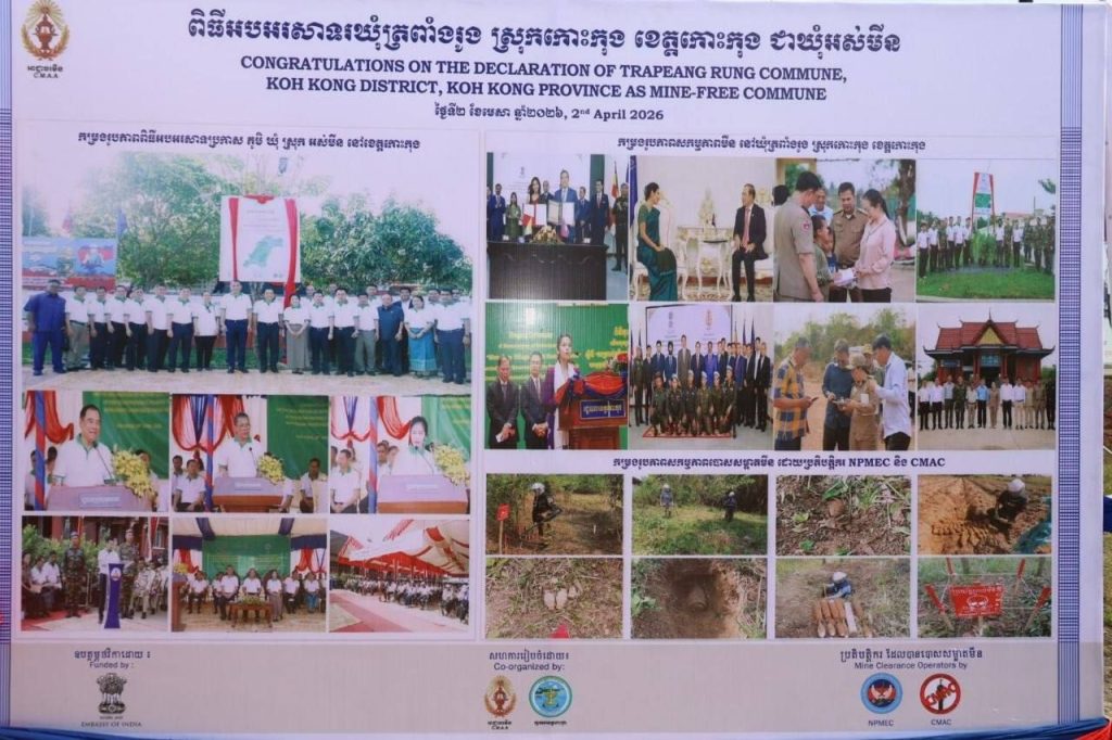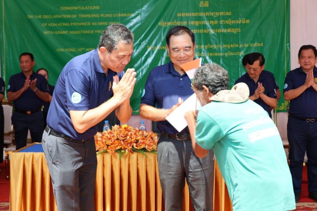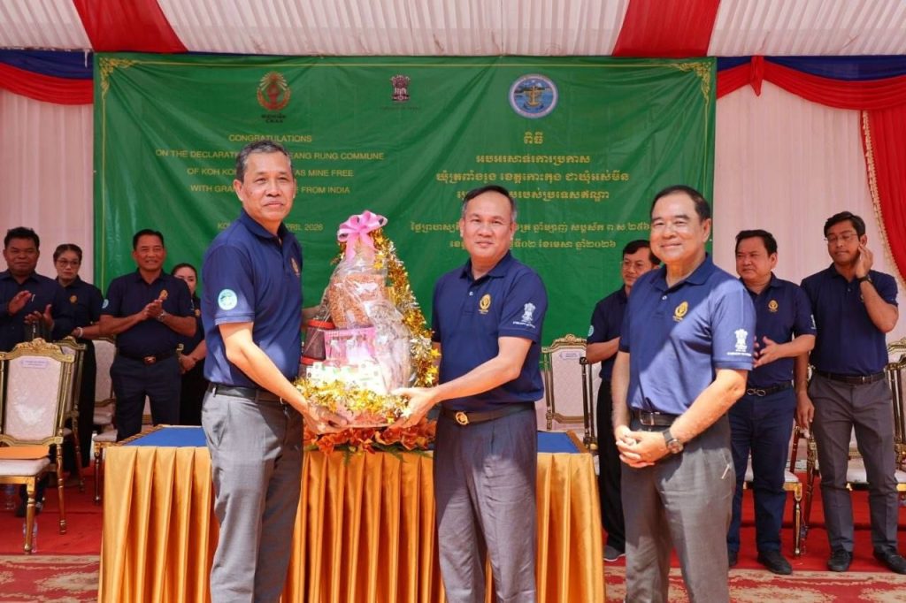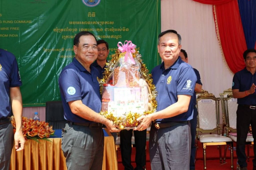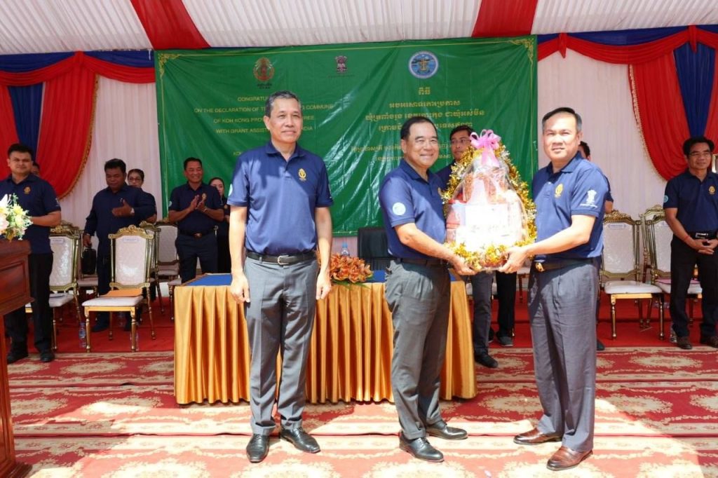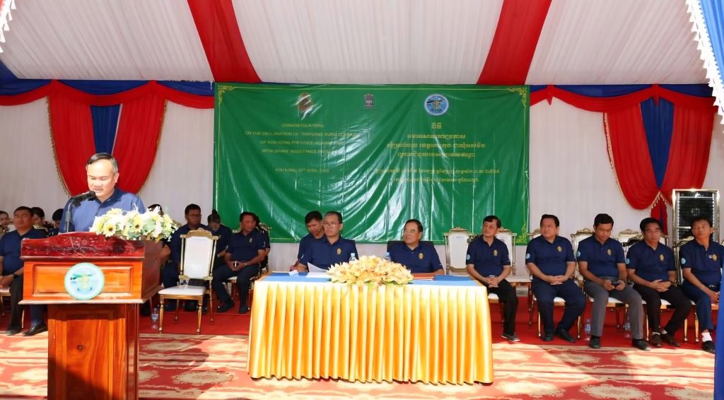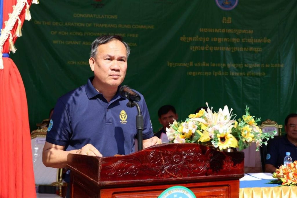 លោក ឡៅ ប៊ុនខេង អភិបាលរង នៃគណៈអភិបាលខេត្ត តំណាងលោកជំទាវ ឈី វ៉ា អភិបាល នៃគណៈអភិបាលខេត្តកោះកុង បានអញ្ជេីញចូលរួមជាគណៈអធិបតី និងផ្ដល់សុន្ទរកថាស្វាគមន៍ ឯកឧត្តមបណ្ឌិត លី ធុជ ទេសរដ្ឋមន្ត្រី ទទួលបន្ទុកបេសកកម្មពិសេស អនុប្រធានទី១ អាជ្ញាធរមីន និង ឯកឧត្តម Vanlalv awna Bawitlung ឯកអគ្គរដ្ឋទូតឥណ្ឌាប្រចាំព្រះរាជាណាចក្រកម្ពុជា ក្នុងពិធីអបអរសាទរការប្រកាសឃុំត្រពាំងរូង ស្រុកកោះកុង ខេត្តកោះកុង ជាឃុំអស់មីន