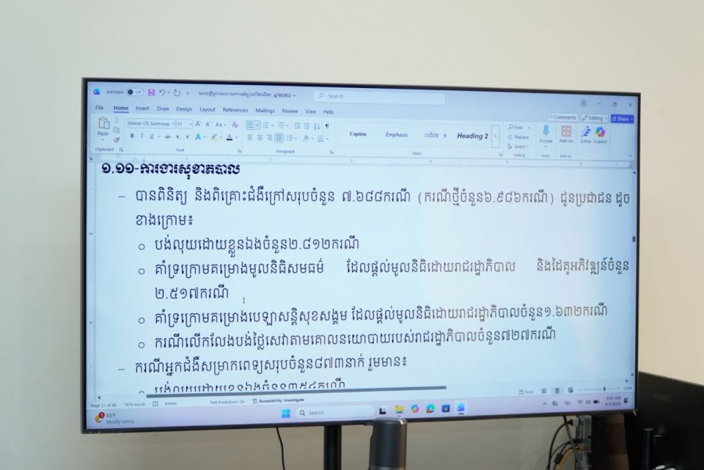 លោក សុខ ចេង អភិបាលរង នៃគណៈអភិបាលខេត្តកោះកុង បានអញ្ជើញដឹកនាំកិច្ចប្រជុំត្រួតពិនិត្យ កែសម្រួលលើរបាយការណ៍ប្រចាំខែមីនា និងទិសដៅការងារប្រចាំខែមេសា ឆ្នាំ២០២៦ របស់រដ្ឋបាលខេត្តកោះកុង។