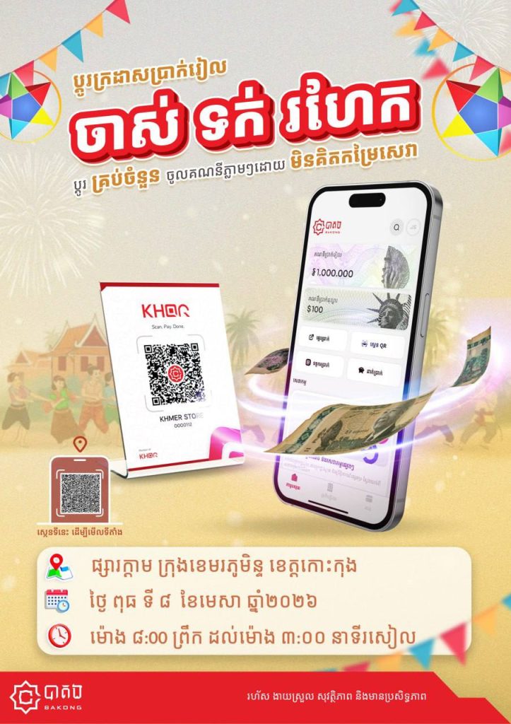 សាខាធនាគារជាតិនៃកម្ពុជាខេត្តកោះកុង សូមអញ្ជើញសាធារណជន ចូលរួមកម្មវិធីប្តូរក្រដាសប្រាក់រៀល ចាស់ ទក់ រហែក ដោយមិនគិតកម្រៃសេវា​ ប្តូរ​គ្រប់ចំនួន​ផ្ទេរចូលក្នុងគណនីបាគង ឬគណនីធនាគារដែលជាសមាជិក KHQR