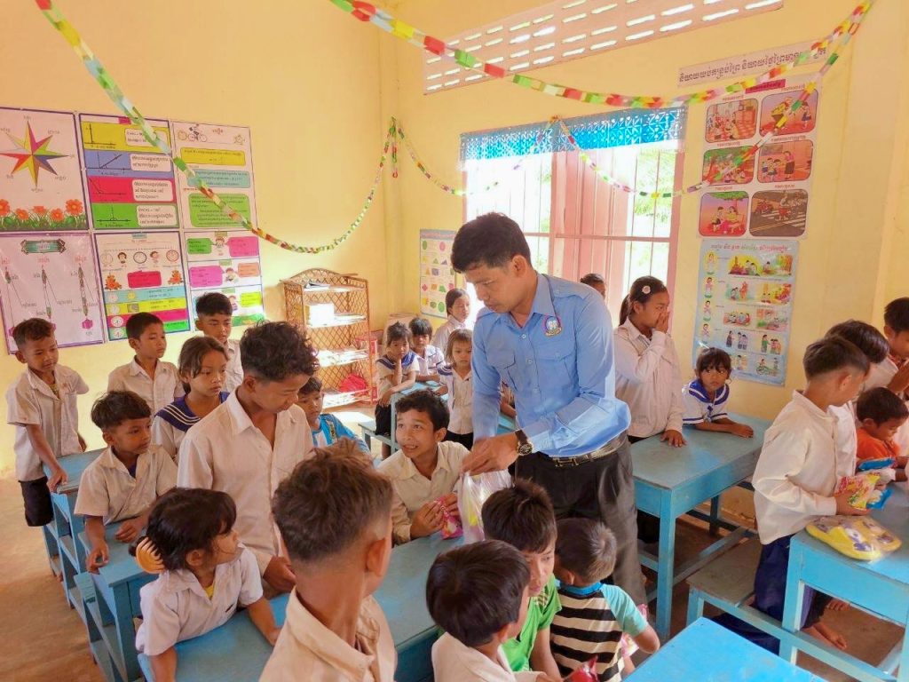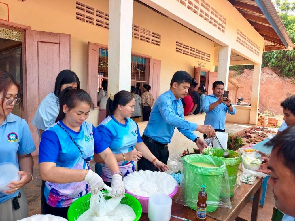 លោក ឃុត មាន អភិបាលរង នៃគណៈអភិបាលស្រុកថ្មបាំងនិងជាប្រធានសហភាពសហព័ន្ធយុវជនកម្ពុជាស្រុកថ្មបាំង បានដឹកនាំ លោក លោកស្រីសមាជិក សមាជិកាយុវជនសហភាពសហព័ន្ធយុវជនកម្ពុជាស្រុកថ្មបាំង អញ្ជើញពិសារនំបញ្ចុកសាមគ្គីភាព និងចែកសម្ភារៈប្រើប្រាស់មួយចំនួនជូនដល់កូនសិស្ស