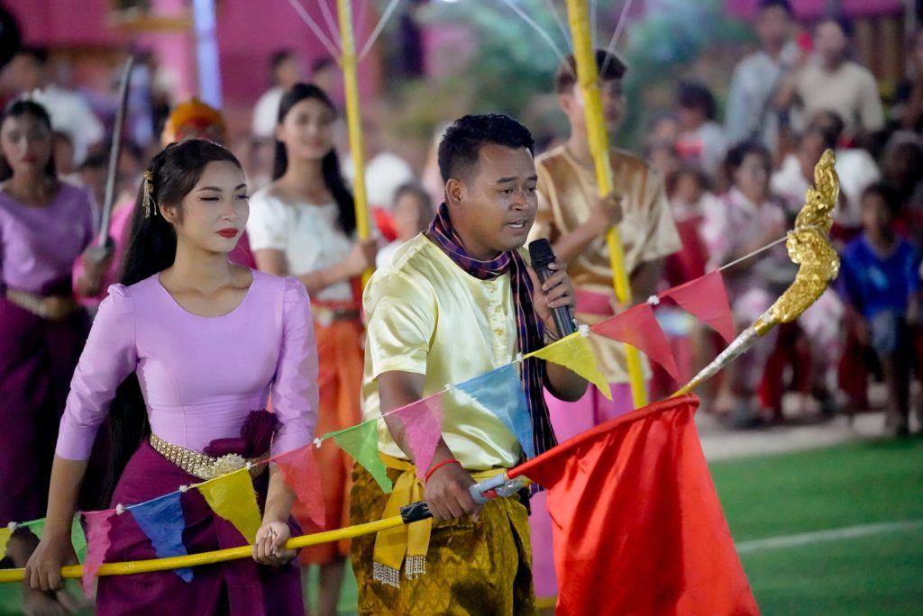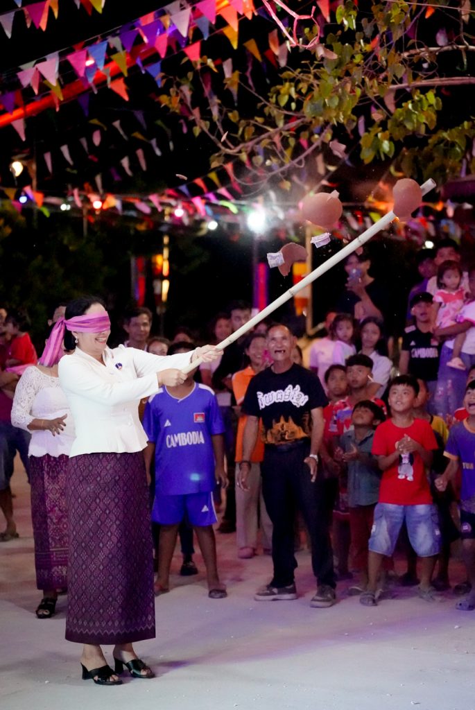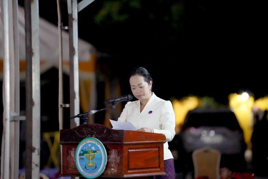លោកជំទាវអភិបាលខេត្ត បានលើកឡើងថា ថ្ងៃនេះ ខ្ញុំព្រះករុណានាងខ្ញុំ និងស្វាមី ពិតជាមានសេចក្តីរីករាយឥតឧបមា ដែល បានចូលរួមជាមួយ ឯកឧត្តម នាយឧត្តមសេនីយ៍ យន្ត មីន រដ្ឋលេខាធិការ ក្រសួងការពារជាតិ ឯកឧត្តម កាយ សំរួម ទីប្រឹក្សារាជរដ្ឋាភិបាលកម្ពុជា និងលោកជំទាវ ឯកឧត្តម ថុង ណារុង ប្រធានក្រុមប្រឹក្សាខេត្ត និងលោកជំទាវ ជាអធិបតី ក្នុងពិធី “កាត់ខ្សែបូរបើកសង្ក្រាន្តឆ្នាំថ្មី និងពិធីបំបួសកុលបុត្រ” នាពេលនេះ។