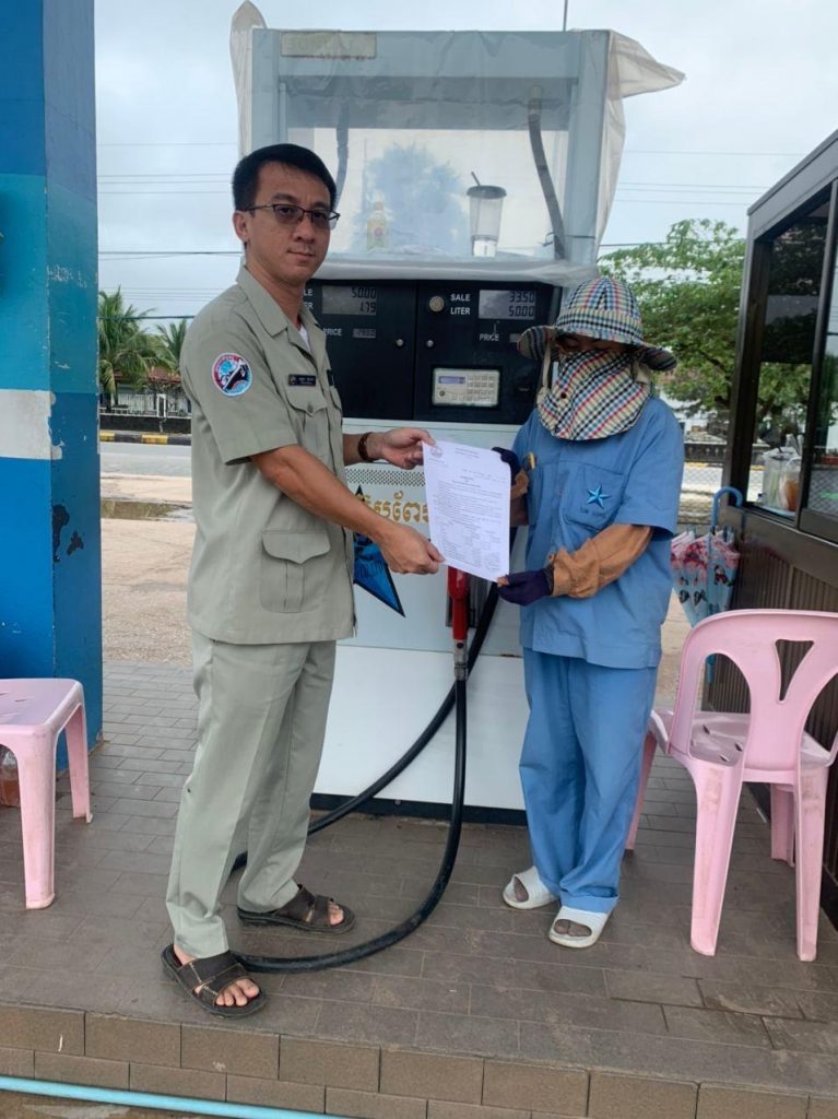 មន្ត្រី នៃមន្ទីរពាណិជ្ជកម្មខេត្តកោះកុង បានចែកសេចក្តីជូនដំណឹងរបស់ក្រសួងពាណិជ្ជកម្មស្តីពីការលក់រាយប្រេងឥន្ធនៈ និងចុះពិនិត្យ នៅតាមស្ថានីយ៍ និងដេប៉ូលក់ប្រេងឥន្ធនៈ ក្នុងក្រុងខេមរភូមិន្ទ។