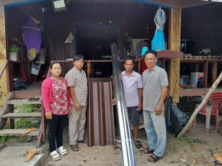 លោក សំឡាន សិរិ ជំទប់ទី១ តំណាងលោកមេឃុំ បានសហការជាមួយមេភូមិ និងសមាជិកភូមិព្រែកខ្យង បានចុះសួរសុខទុក្ខនិងនាំយកហ្វីប្រូ ចំនួន ៤សន្លឹក នឹងស័ង្កសី ២សន្លឹក ជូនដល់ប្រជាពលរដ្ឋ ០១គ្រួសារ ឈ្មោះ សុខ បុិន ភេទប្រុស ដែលផ្ទះរបស់គាត់បានរងខ្យល់ព្យុះរបើកដំបូលផ្ទះ ធ្វើឱ្យខូចខាតហ្វីប្រូនិងស័ង្កសី មានទីលំនៅស្ថិតក្នុងភូមិព្រែកខ្យង ឃុំតានូន
