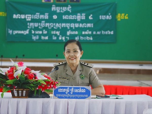 លោកស្រី គ្រី សោភ័ណ ប្រធានក្រុមប្រឹក្សាស្រុក ជាប្រធាន អង្គប្រជុំ បានដឹកនាំកិច្ចប្រជុំសាមញ្ញលើកទី០១ អាណត្តិទី៤ របស់ក្រុមប្រឹក្សាស្រុក លើរបៀបវារៈ