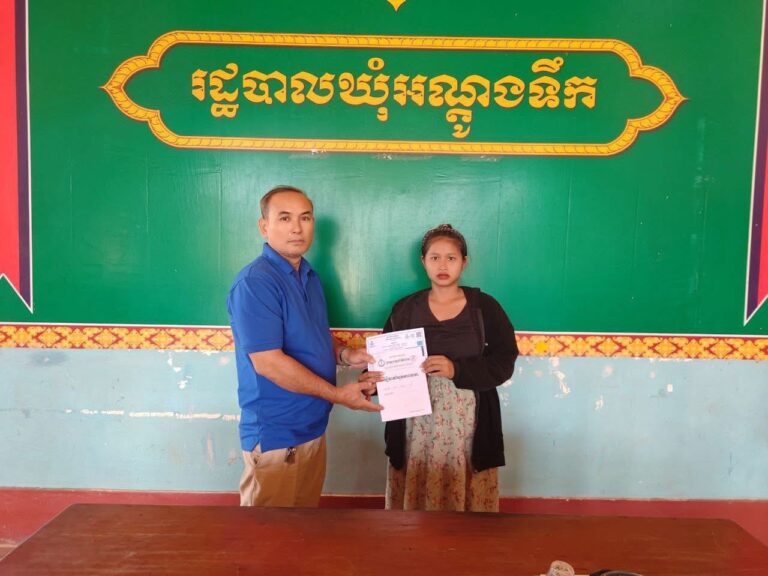 លោក យិន យួត ជំទប់ទី១ឃុំអណ្តូងទឹក បានអនុម័តជូនស្រ្តីមានផ្ទៃពោះចូលទៅក្នុងកម្មវិធីជាតិជំនួយសង្គម ក្នុងកញ្ចប់គ្រួសារ ដែលមានប័ណ្ណសមធម៌ ចំនួន២នាក់ ដែលមានទីលំនៅបច្ចុប្បន្នភូមិជីត្រេះ ឃុំអណ្តូងទឹក ស្រុកបូទុមសាគរ ខេត្តកោះកុង
