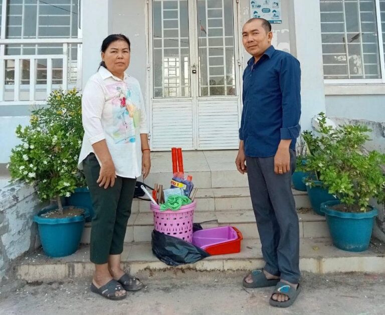 លោកស្រី ផៃ ទួន សមាជិកក្រុមប្រឹក្សាឃុំ ទទួលបន្ទុកកិច្ចការនារីនឹងកុមារបាននាំយកសម្ភារ:អនាម័យមួយចំនួនប្រគល់ជូនសាលាបឋមសិក្សាតានូន