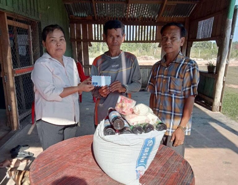 លោកស្រី ផៃ ទួន សមាជិកក្រុមប្រឹក្សាឃុំ ទទួលបន្ទុកកិច្ចការនារីនិងកុមារឃុំបានសហការជាមួយលោកមេភូមិតានូន ចុះសួរសុខទុក្ខគ្រួសារក្រីក្រដែលមានជម្ងឺប្រចាំកាយឈ្មោះ ឃុន ស្រៀង ភេទប្រុស អាយុ៦១ឆ្នាំ