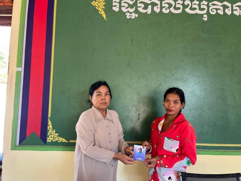 លោកស្រី ផៃ ទួន សមាជិកក្រុមប្រឹក្សាឃុំ និងទទួលបន្ទុកកិច្ចការនារី និងកុមារឃុំ តំណាងលោកមេឃុំ បានផ្ដល់កាតវីងជូនស្ដ្រីក្រីក្រមានផ្ទៃពោះ ឈ្មោះ ជុំ ខេម មានទីលំនៅស្ថិតនៅភូមិតានូន ឃុំតានូន ស្រុកបូទុមសាគរ ខេត្តកោះកុង