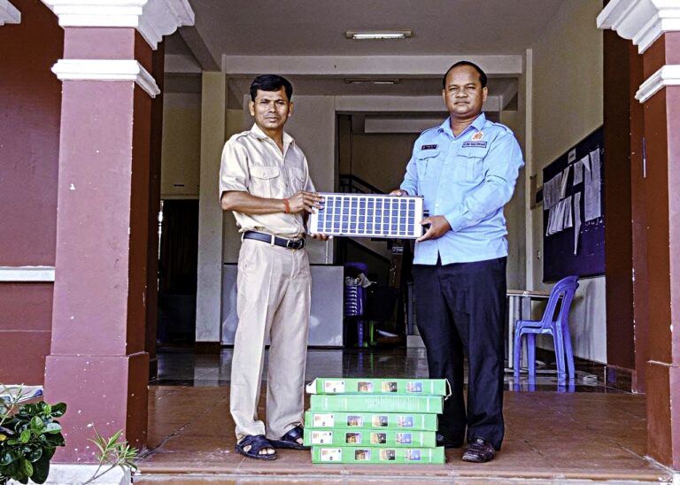 លោក ពេជ្រ សិលា អភិបាលស្ដីទី បានប្រគល់អំពូលសរឡាដែលដំណើរការដោយថាមពលពន្លឺព្រះអាទិត្យ ចំនួន៥អំពូល ដែលជាអំណោយរបស់ លោក ក្រូច បូរីសីហា អភិបាល នៃគណៈអភិបាលស្រុក ដល់វិទ្យាល័យ ហ៊ុន សែន ចំការលើ ដើម្បីដាក់បំភ្លឺ និងលម្អរ នៅក្នុងបរិវេណសាលាពេលរាត្រី ស្ថិតនៅភូមិចំការលើ ឃុំថ្មស ស្រុកបូទុមសាគរ ខេត្តកោះកុង។