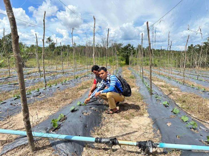លោក នាង ពិសិដ្ឋ អនុប្រធានការិយាល័យកសិកម្ម ធនធានធម្មជាតិ និងបរិស្ថានចុះតាមដានពិនិត្យ និងជួយដោះស្រាយបញ្ហាលើបច្ចេកទេសកសិកម្មដំណាំបន្លែ នៅភូមិជីត្រេះ ឃុំអណ្តូងទឹក ស្រុកបូទុមសាគរ ខេត្តកោះកុង