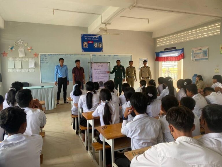 រដ្ឋបាលឃុំ និងមេភូមិបាក់រនាស់សហការជាមួយកម្លាំងប៉ុស្តិ៍នគរបាល ចុះផ្សព្វផ្សាយអំពីរួមគ្នាបង្ការទប់ស្កាត់ការប្រើប្រាស់គ្រឿងញៀននិងអំពើហិង្សាទាក់ទងនិងយេនឌ័រ នៅសាលាអនុវិទ្យាល័យ ហ៊ុន សែន តានូន