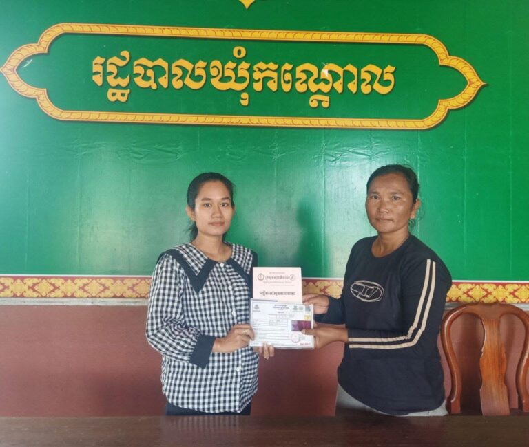 លោកស្រី ផង់ លក្ខណា ស្មៀនឃុំបានចុះឈ្មោះជូនស្រ្តីមានផ្ទៃពោះចូលទៅក្នុងកម្មវិធីជាតិជំនួយសង្គម ក្នុងកញ្ចប់គ្រួសារ ដែលមានប័ណ្ណសមធម៌ ចំនួន:០១នាក់ឈ្មោះ ឯក សុគន្ធា អាយុ ៣៧ឆ្នាំ