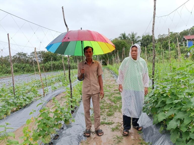 លោក ឈុន ចាន់ណា ប្រធានការិយាល័យកសិកម្ម ធនធាន ធម្មជាតិ និងបរិស្ថាន លោក នាង ពិសិដ្ឋ អនុប្រធានការិយាល័យកសិកម្ម ធនធាន ធម្មជាតិ និងបរិស្ថាន តាមដាន ត្រួតពិនិត្យ និងជួយបច្ចេកទេសដល់កសិករ នៅភូមិជីត្រេះ