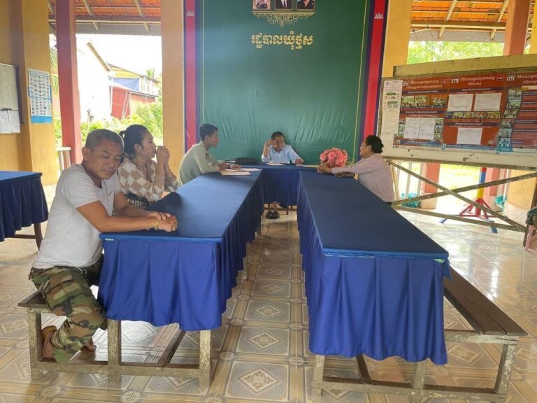 វេលាម៉ោង ១០:៣០ នាទីព្រឹក សាលាឃុំថ្មស បានបើកកិច្ចប្រជុំសម្របសម្រួលដោះស្រាយទំនាស់ដី ក្រោម អធិបតីភាពលោក អិក កួន មេឃុំថ្មស
