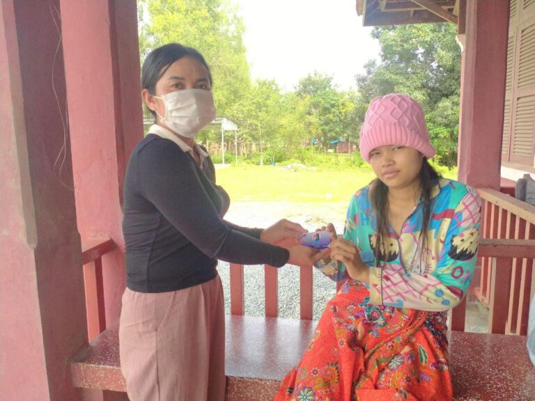 លោកស្រី ង៉ែ ដា ជំទប់ទី១ នៃឃុំកណ្តោល និងជាអ្នកទទួលបន្ទុកស្ត្រី និងកុមារឃុំ បានផ្តល់កាតវិងជូនស្រ្តីទើបសម្រាលកូនចំនួន ០១នាក់