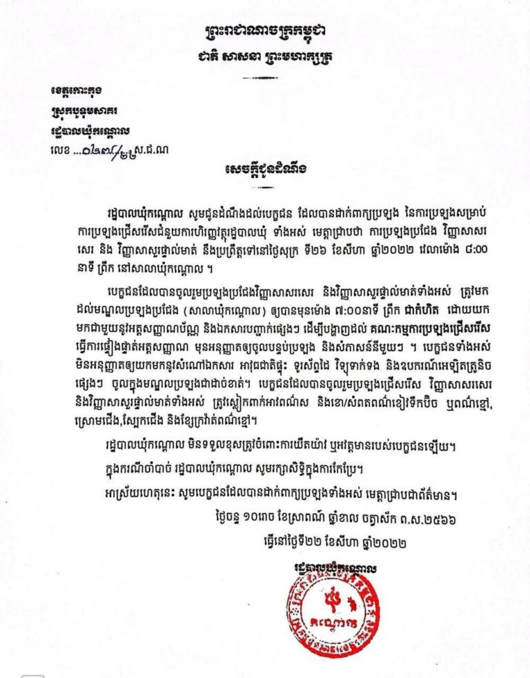 រដ្ឋបាលឃុំកណ្តោល មានកិត្តិយសសូមជូនដំណឹងដល់បក្ខជនដែលបានដាក់ពាក្យ ប្រឡង ជាជំនួយការហិរញ្ញវត្ថុ