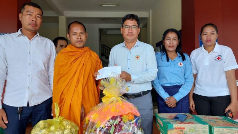 លោក ហាក់ ឡេង ប្រធានអនុសាខាកាកបាទក្រហមស្រុក និងជាអភិបាលស្រុក បានថ្លែងអំណរគុណ ចំពោះ ព្រះគ្រូ ហៀន ដើង ព្រះចៅអធិការវត្តគិរីបូទុម ហៅវត្តតាអុក ដែលតែងតែជួយឧបត្ថម្ភទាំងផ្នែកសម្ភារ និងកម្លាំងកាយចិត្ត មកដល់អនុសាខាកាកបាទក្រហមស្រុក