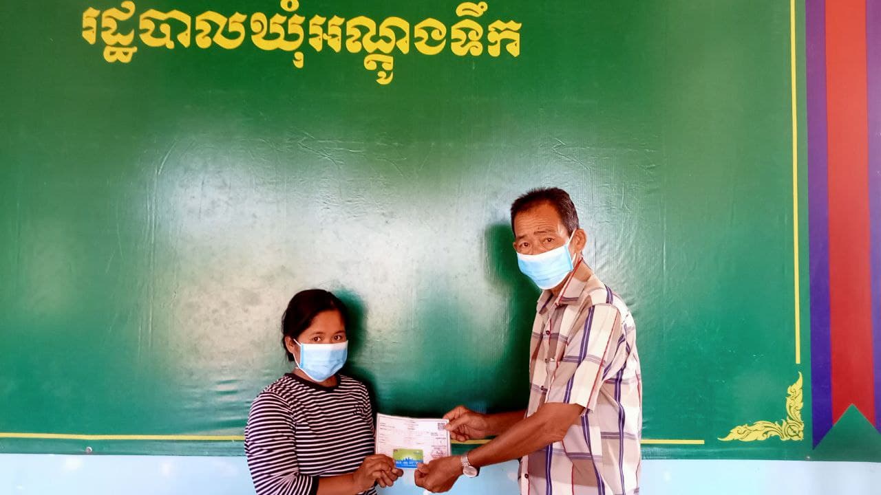 លោក ឃៀង យិង មេឃុំអណ្តូងទឹក បានអញ្ជើញផ្តល់កាតវីងជូនស្ត្រីមានផ្ទៃពោះឈ្មោះ ងិន ចាន់ណា អាយុ៣០ឆ្នាំ មានទីលំនៅក្នុងភូមិប្រទាល ឃុំអណ្តូទឹក ស្រុកបូទុមសាគរ ខេត្តកោះកុង ស្ថិតក្នុងគ្រួសារមានជីវភាពក្រីក្រ(មានប័ណ្ណសមធម៌) ដើម្បីយកទៅប្រើប្រាស់ និងអនុវត្តន៍តាមការណែនាំរបស់មណ្ឌលសុខភាព