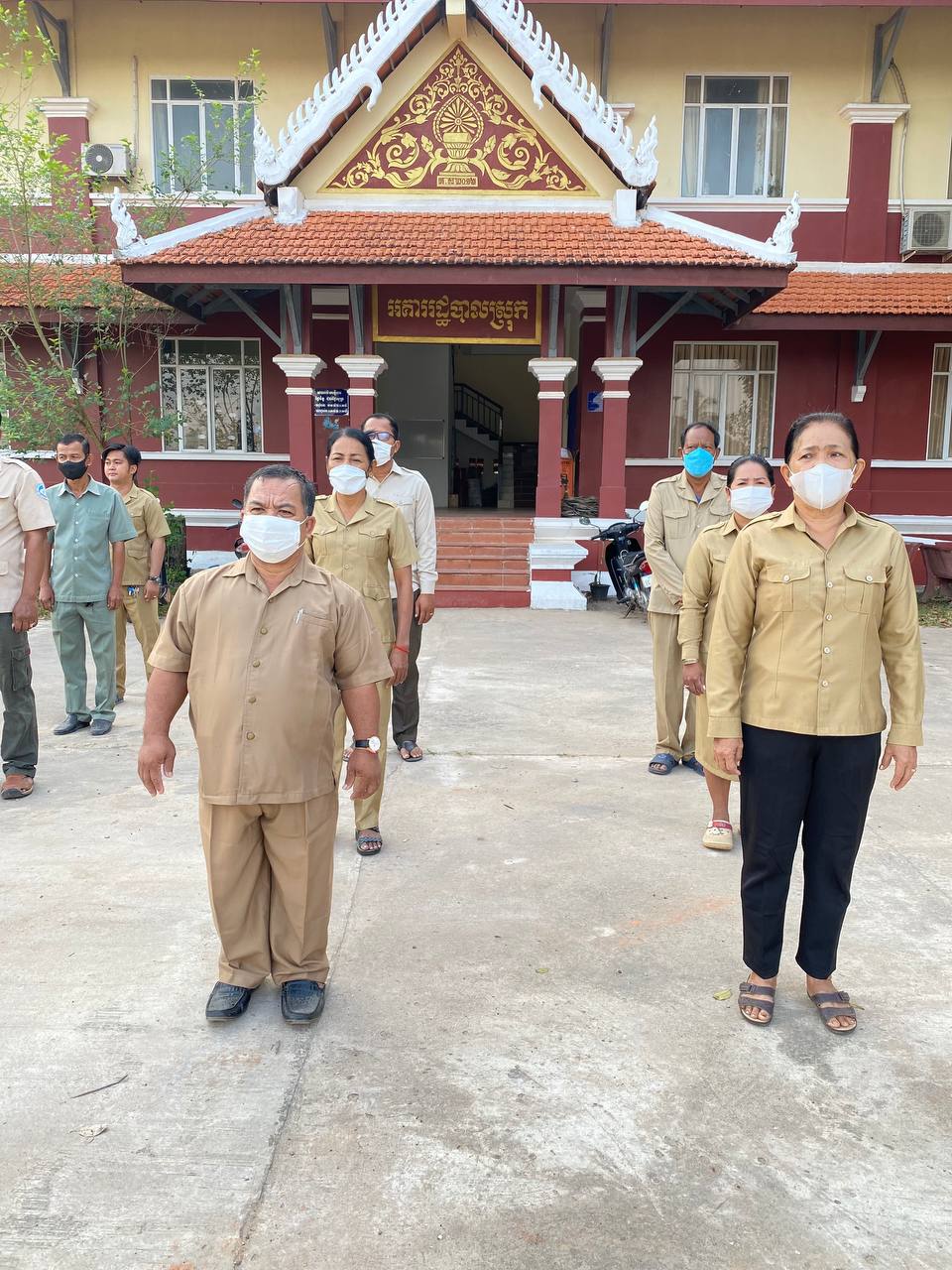 ក្រុមប្រឹក្សាស្រុក គណៈអភិបាលស្រុក និងការិយាល័យចំណុះទាំង១៣របស់រដ្ឋបាលស្រុក កងកម្លាំងប្រដាប់អាវុធ និងប្រជាការពារភូមិបានចូលរួមពិធីគោរពទង់ជាតិរៀងរាល់ព្រឹកថ្ងៃចន្ទ ដើមសប្តាហ៍