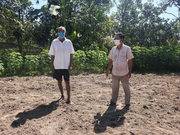 ពេលព្រឹកម៉ោង ០៨:៤៥ នាទី លោក ឈុន ចាន់ណា ប្រធានការិយាល័យកសិកម្ម ធនធានធម្មជាតិ និងបរិស្ថាន លោក នាង ពិសិដ្ឋ អនុប្រធានការិយាល័យកសិកម្ម ធនធានធម្មជាតិ និងបរិស្ថាន ចុះតាមដាន ត្រួតពិនិត្យ និងជួយដោះស្រាយបញ្ហារបច្ចេកទេសនានា ទាក់ទងវិស័យកសិកម្ម ដាំដុះដំណាំបន្លែរ