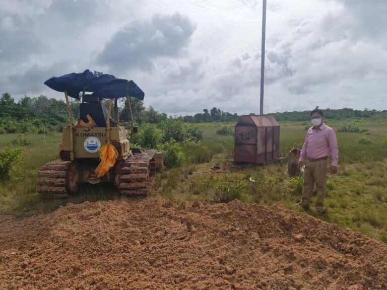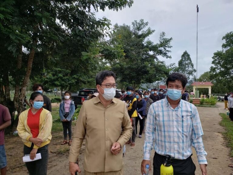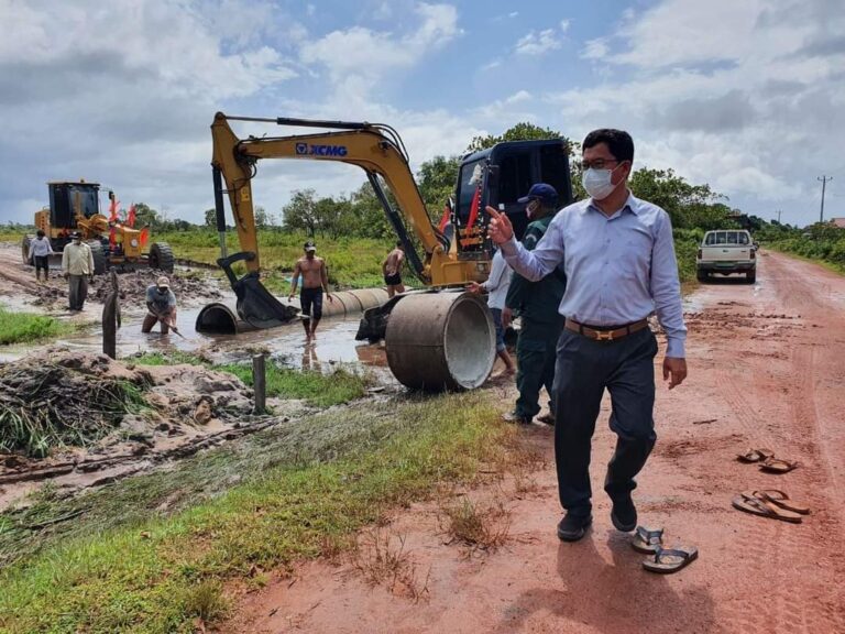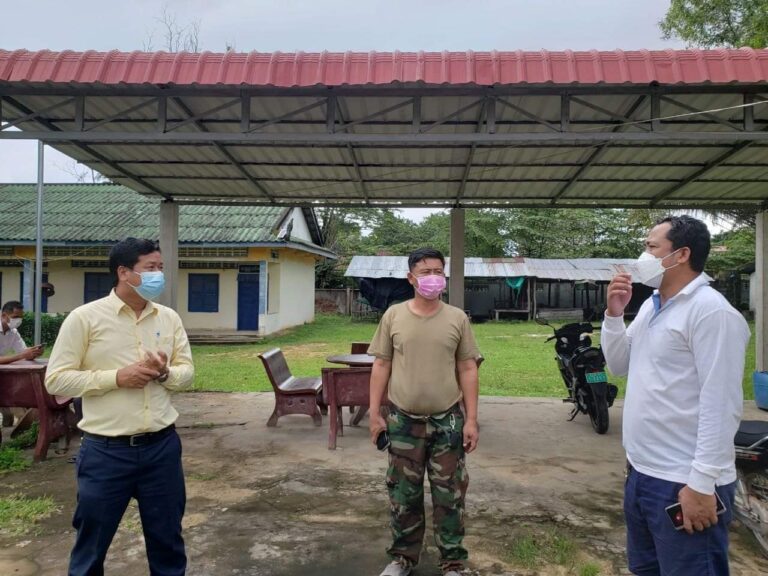 លោក ហាក់ ឡេង អភិបាល នៃគណ:អភិបាលស្រុកបានចុះសួរសុខទុក្ខ បងប្អូនកំលាំងរបស់មន្ទីរសាធារណការខេត្ត ដែលកំពុងតែសស្រាក់សស្រាំ ធ្វើផ្លូវ និងដាក់លូចូលទីតាំងស្មសាន សំរាប់បូជាសព ដែលស្លាប់ដោយជំងឺកូវីដ-១៩