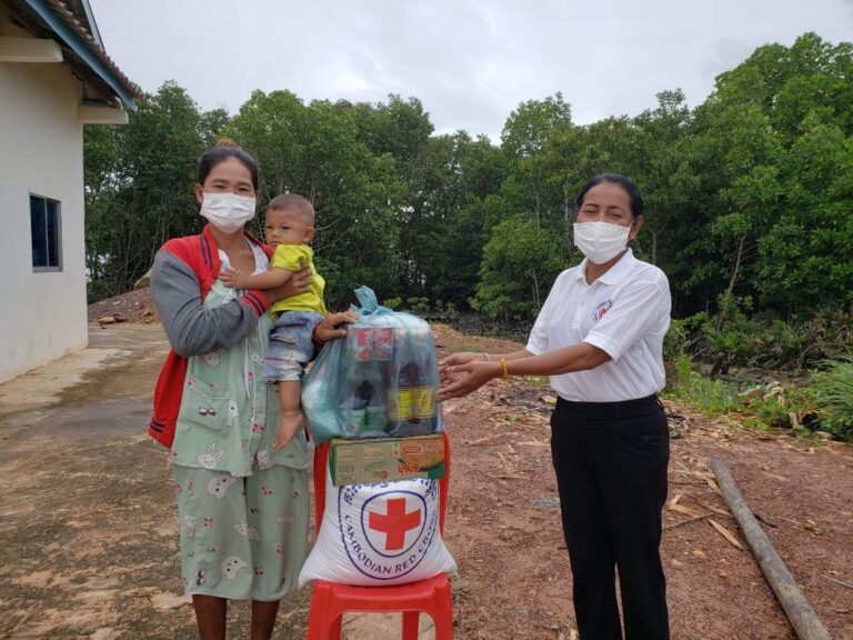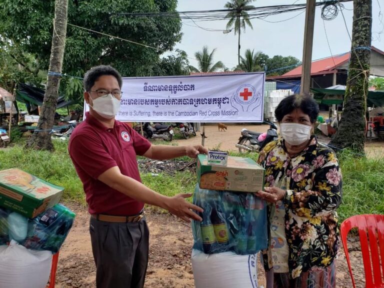 លោកស្រី អ៉ិន សោភ័ណ្ឌ អភិបាលរងស្រុក និងជាអនុប្រធានអនុសាខាកាកបាទក្រហមកម្ពុជាស្រុក ដឹកនាំក្រុមការងារ សហការជាមួយអាជ្ញាធរឃុំ នាំយកអំណោយរបស់អនុសាខាផ្តល់ជូនគ្រួសារដែលកំពុងធ្វើចត្តាឡីស័កចំនួន ០៥ខ្នងផ្ទះ ស្មើនឹង០៥គ្រួសារ ស្ថិត ភូមិស្រែត្រាវ