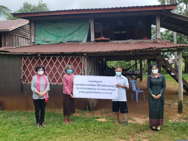 នាំយកអំណោយដ៏ថ្លៃថ្លារបស់សម្ដេចអគ្គមហាសេនាបតីតេជោ ហ៊ុន សែន នាយករដ្ឋមន្ត្រីនៃព្រះរាជាណាចក្រកម្ពុជាប្រគល់ជូន លោក សូ សយ អាយុ៦៥ឆ្នាំ មានសំណាងជាអ្នកទទួលវ៉ាក់សាំង លេខរៀងទី៤លាន ជាជនទី៤ នៃលេខសំណាងរបស់សម្តេច គាត់ជាអតីតយុទ្ធជន និងជាយុទ្ធជនពិការជើងឆ្វេងដែលសព្វថ្ងៃ រស់នៅភូមិប្រទាល ឃុំអណ្តូងទឹក ស្រុកបូទុមសាគរ ខេត្តកោះកុង