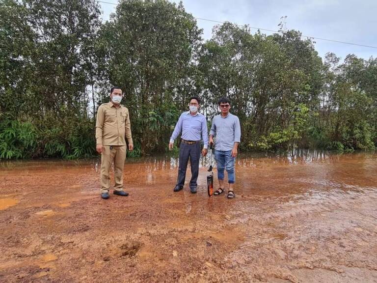 លោក ហាក់ ឡេង អភិបាល នៃគណ:អភិបាលស្រុក បានចុះពិនិត្យមើលស្ថានភាពផ្លូវក្រួសក្រហម មួយខ្សែតភ្ជាប់ពីវិថី សាយ ភូថង ទៅឃុំថ្មស