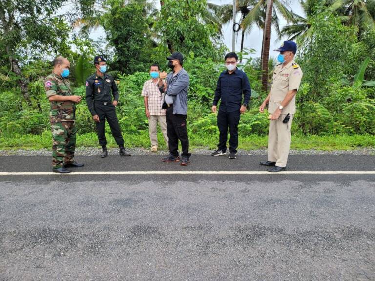 លោក ក្រូច បូរីសីហា អភិបាលរងស្រុក និងជា អនុប្រធាន គណៈបញ្ជាការឯកភាពស្រុក បានដឹកនាំក្រុមការងារចូលរួម អមដំណើរ លោក សំឃិត វៀន អភិបាលរង នៃគណៈអភិបាលខេត្តកោះកុង ចុះកំណត់ទីតាំងពិនិត្យការវាស់កម្តៅ របស់បងប្អូនប្រជាពលរដ្ឋ ក្នុងការធ្វើដំណើរចេញចូល ក្នុងមូលដ្ឋានខេត្តកោះកុង ដើម្បីទប់ស្កាត់ ពីជំងឺ កូវិដ-១៩ ស្ថិតនៅភូមិតាំកន់ ឃុំកណ្តោល ស្រុកបូទុមសាគរ ខេត្តកោះកុង ។