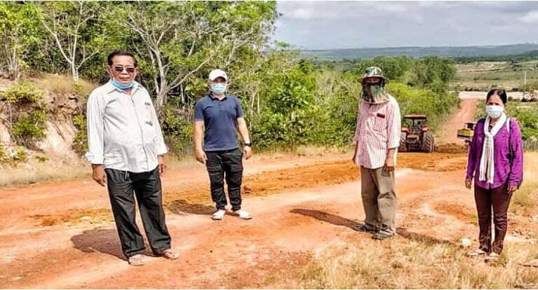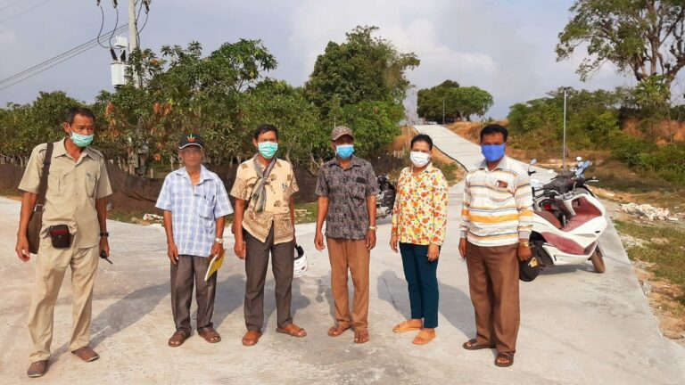 លោក ឃៀង យិង មេឃុំអណ្តូងទឹក បានដឹកនាំក្រុមការងារ សហការជាមួយ នាយកសាលាបឋមសិក្សាតាមាឃ ចុះពិនិត្យការដ្ឋានសាងសង់ផ្លូវបេតុងមួយខ្សែប្រវែង២៥០ម៉ែត្រ