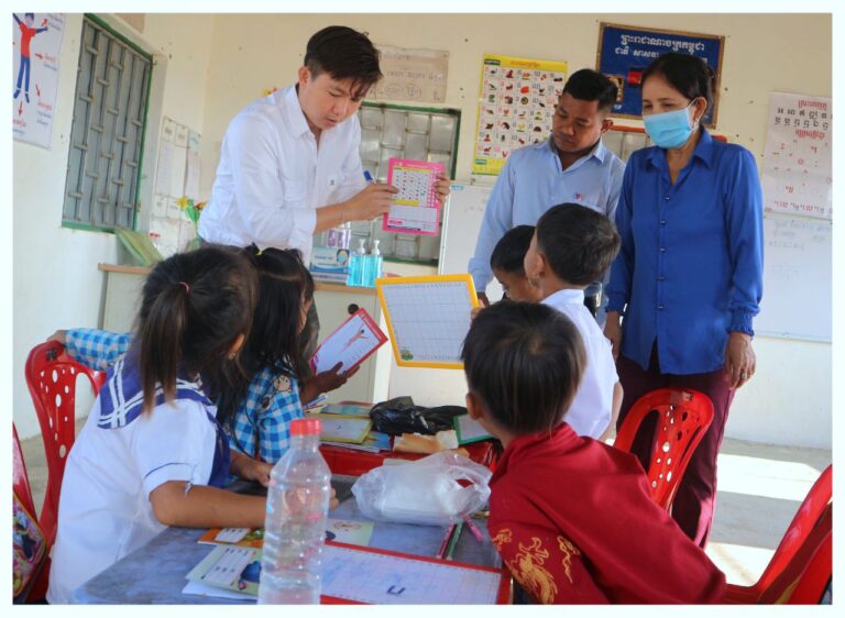លោកស្រី ស្រី សូរិយា ក្រុមប្រឹក្សាឃុំ ទទួលបន្ទុកកិច្ចការនារីឃុំ និងស្មៀន បានចុះពិនិត្យលើការបង្រៀនរបស់គ្រូមតេយ្យសហគមន៍ភូមិចំការលើ