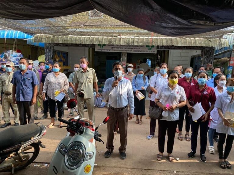លោកស្រី គ្រី សោភ័ណ ប្រធានក្រុមប្រឹក្សាស្រុក លោក ហាក់ ឡេង អភិបាល នៃគណ:អភិបាលស្រុក បានដឹកនាំ លោក លោកស្រី សមាជិក សមាជិកា ក្រុមប្រឹក្សា អភិបាលរងស្រុក នាយករដ្ឋបាល លោក លោកស្រីប្រធាន អនុប្រធាន ការិយាល័យចណុះទាំង១៣ នៃរដ្ឋបាលស្រុក រដ្ឋបាលឃុំអណ្តូងទឹក យុវជនកាកបាទក្រហម និងយុវជន ស.ស.យ.កស្រុក ធ្វើយុទ្ធនាការផ្សព្វផ្សាយវិធានការ ការពារ ទប់ស្កាត់ការឆ្លងជម្ងឺកូវីត១៩