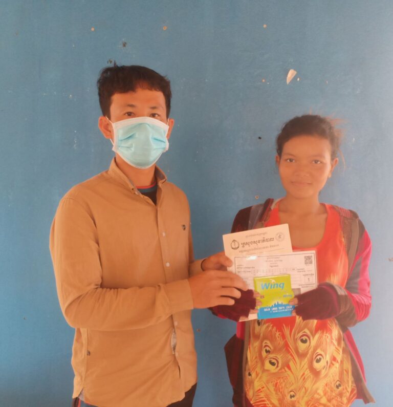 លោក សយ សុវណ្ណ ស្មៀនឃុំ តំណាងអោយលោក វំាង វីរះ មេឃុំតានូន បានផ្តល់កាតវីងជូនស្រ្តីក្រីក្រមានផ្ទៃពោះ ឈ្មោះ គង់ សារ៉ាយ