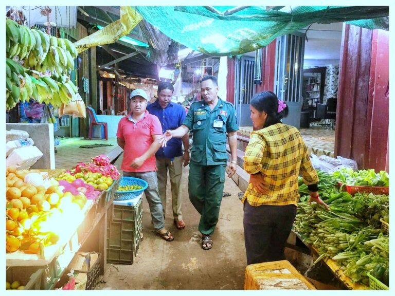 លោក មៀច ស៊ីនាម ជំទប់ទី២ និងមានការចូលរួមពីប៉ុស្តិ៍រដ្ឋបាល អាជ្ញាធរភូមិថ្មស បានចុះពិនិត្យលើការលក់ដូររបស់អាជីវករក្នុងផ្សារថ្មស