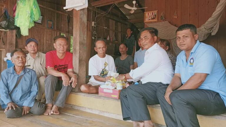 លោក វាំង វិរះ មេឃុំតានូន ដឹកនាំក្រុមការងារ ចុះទៅសួរសុខទុក្ខដល់លោក ឆឹង ព្រាក ភេទ ប្រុស អាយុ ៧២ ឆ្នាំ (តួនាទីជាអនុភូមិព្រែកខ្យងដែលកំពុងមានជម្ងឺស្ពឹកមួយចំហៀងខ្លួនដើរមិនរួច) មានទីលំនៅបច្ចុប្បន្នភូមិព្រែកខ្យង