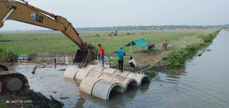 លោក ឡឹង កៅ មេភូមិកណ្តោល និងជាប្រធានគណៈកម្មការសហគមន៍ សហការជាមួយជំនួយការភូមិ និងប្រជាពលរដ្ឋ បានដាក់លូឆ្លងប្រឡាយ ការពារទំនប់ទឹកប្រៃកណ្តោល